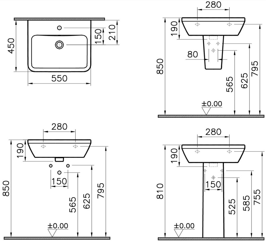 Vitra Integra Lavabo suspendu 55x45 cm avec trou pour robinetterie au milieu, Blanc (7049-003-0001)