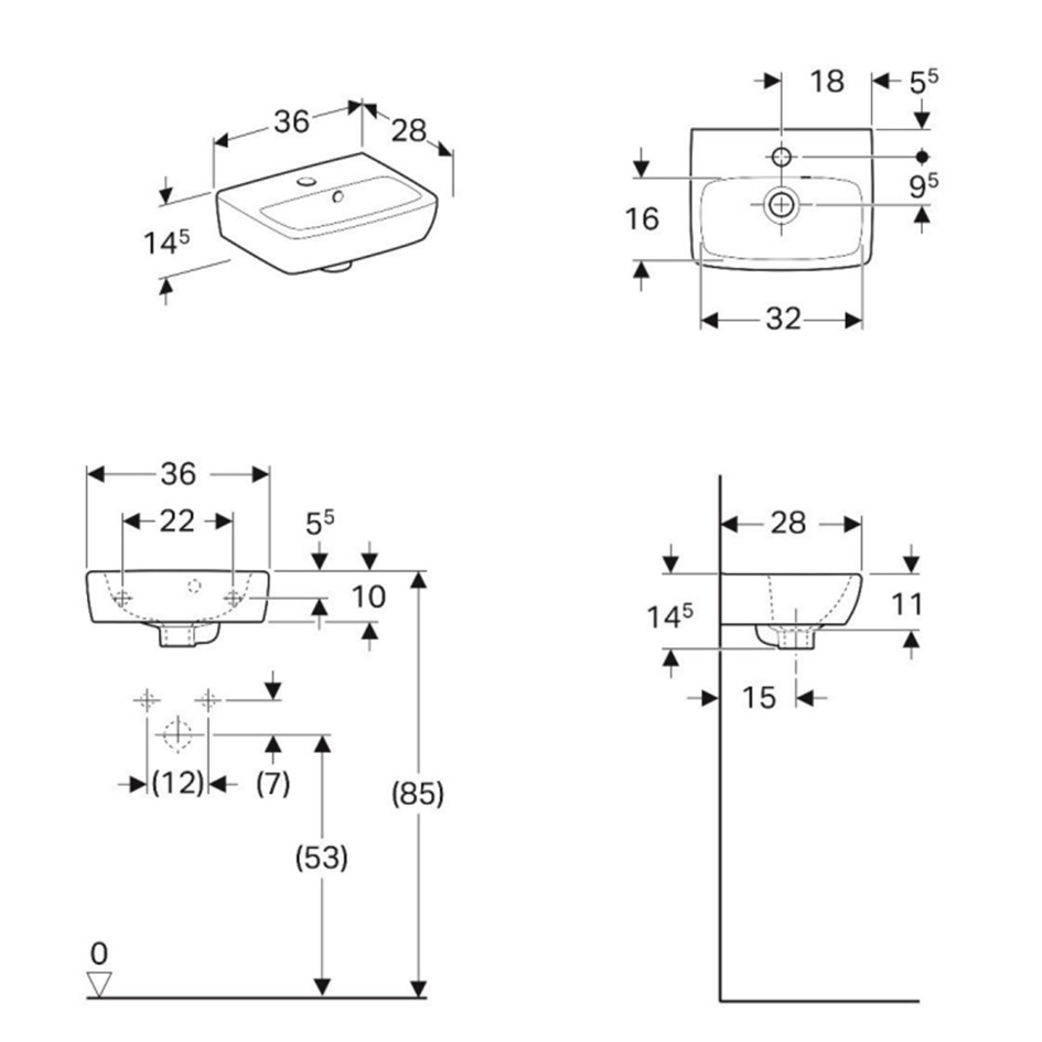 Geberit Selnova Lavabo 36x28cm, Avec trop plein, Blanc (500.316.01.1)