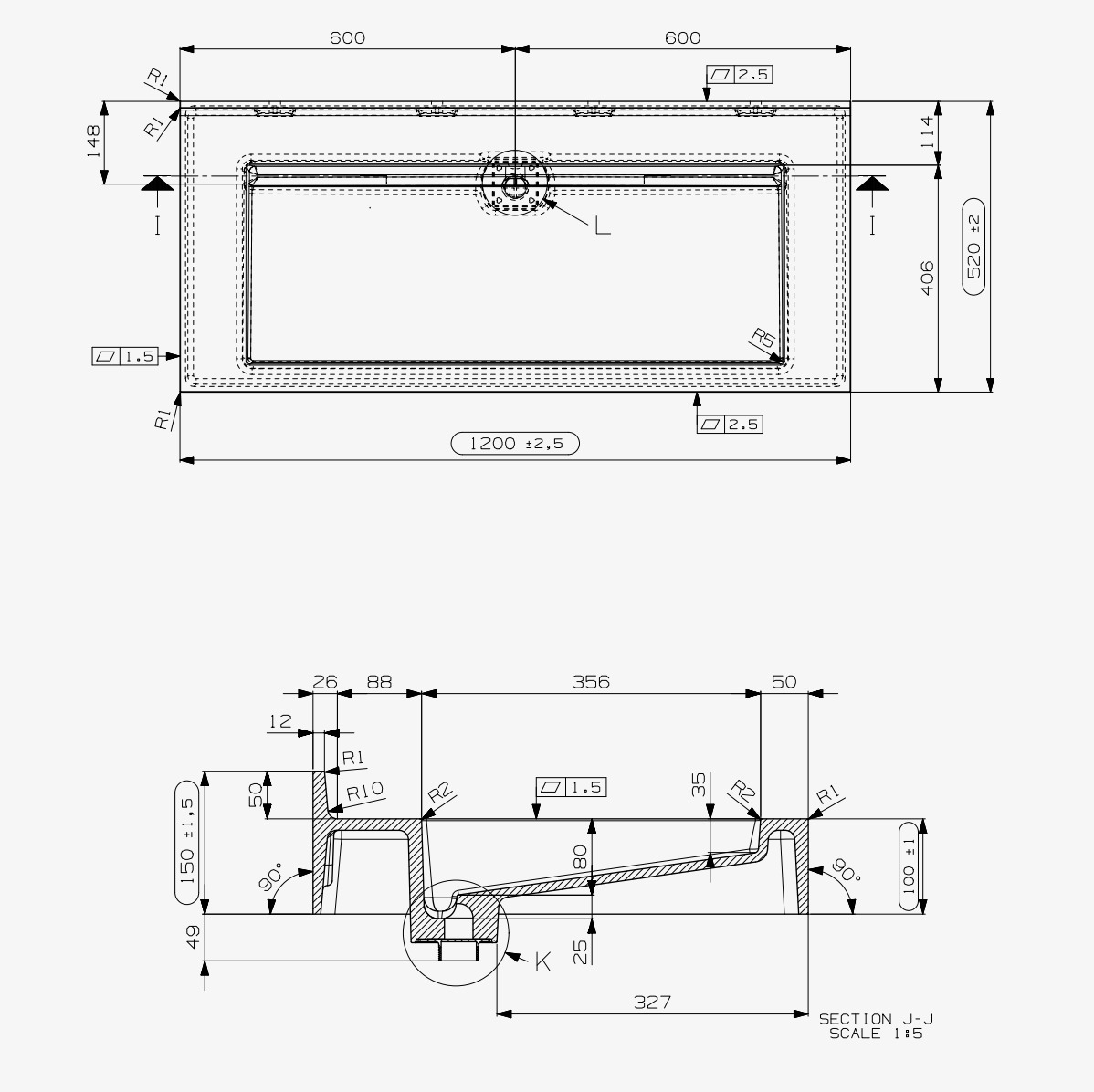 une vidange complète. - Dimensions: 1200x520x100 mm