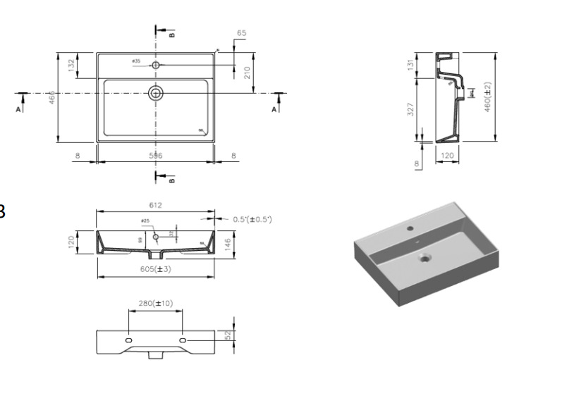 Descriptif technique lavabo à suspendre ou à poser SAT Infinitio