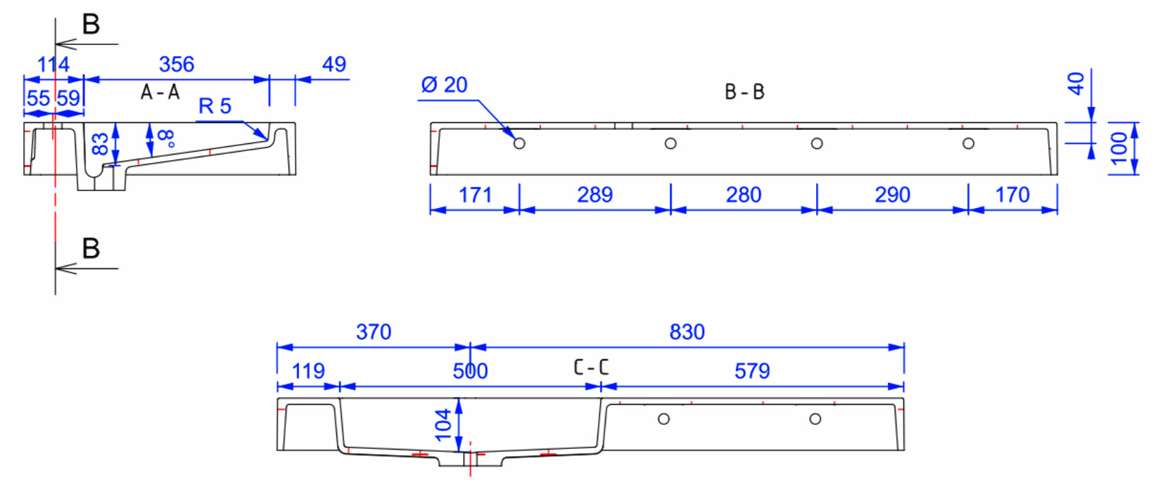 une vidange complète. - Dimensions: 1200x550x100 mm