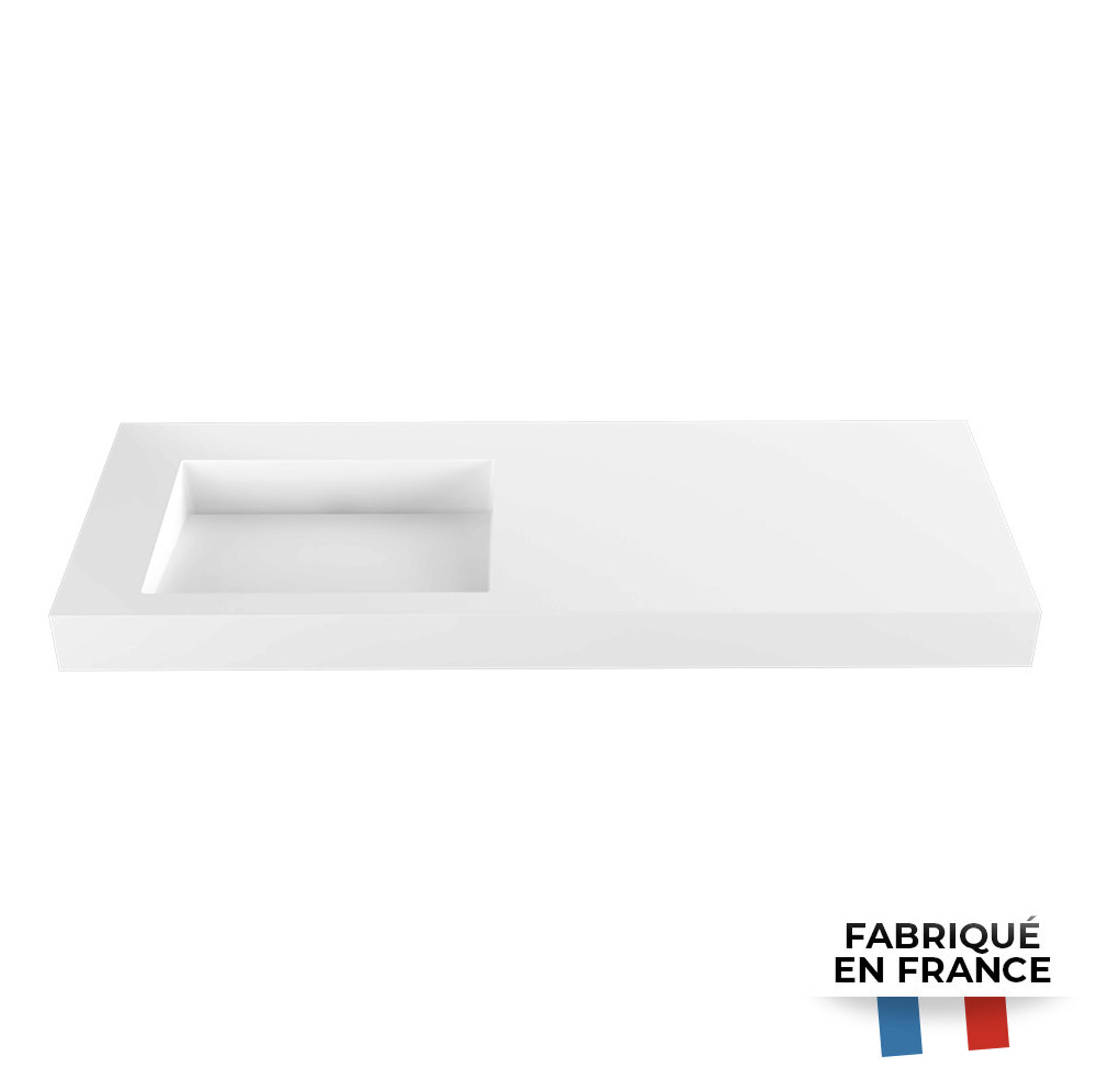 iStone Plan vasque autoportant fabriqué en France 1200x550x100mm, en Solid Surface, blanc mat (LIVEA-1200)