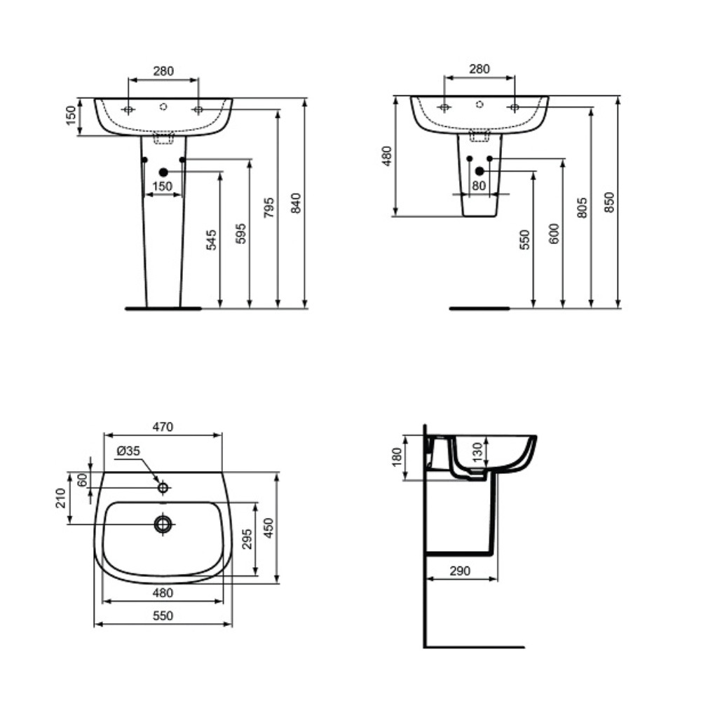 Caractéristiques du Kheops Lavabo monotrou en porcelaine vitrifiée, avec trop-plein, 600 x 190 x 460 mm, blanc (P098401):