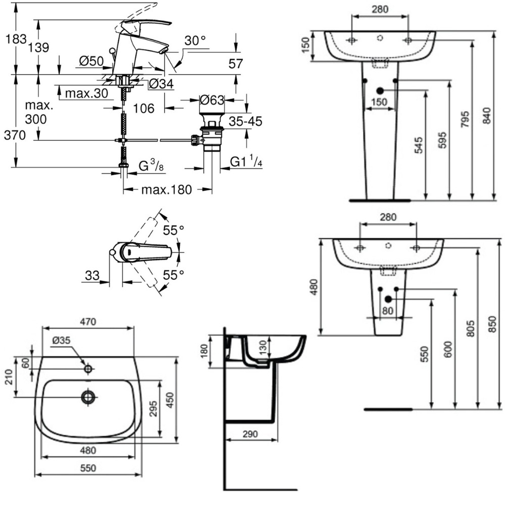 Caractéristiques de l'Ensemble Lavabo suspendu monotrou en porcelaine vitrifiée Kheops + Mitigeur monocommande Grohe Start, Chrome (P098401-SET1) :