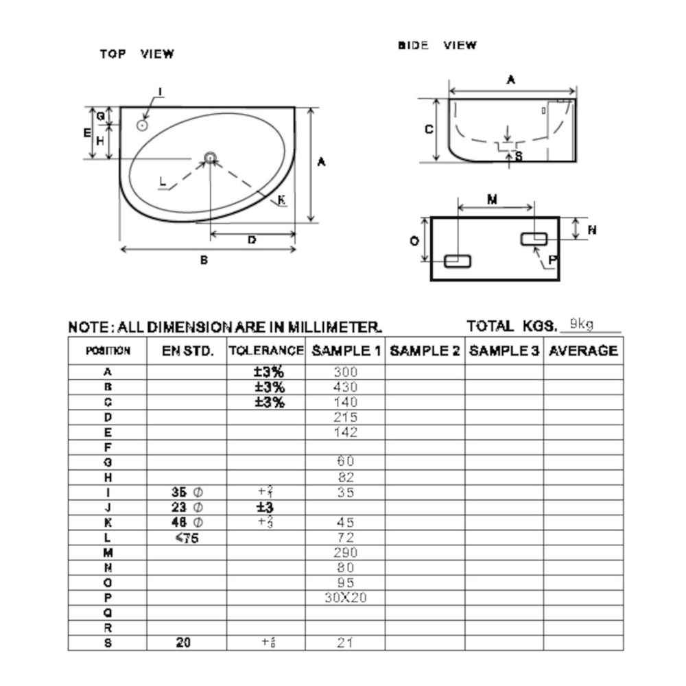 Avec ses dimensions de 42 cm de largeur, 29,5 cm de profondeur et 13,5 cm de hauteur, ce lavabo s’installe parfaitement dans un angle, libérant de l’espace tout en apportant une touche moderne. Le trou pour robinet est positionné à gauche, facilitant l’accès et l’utilisation dans les configurations murales spécifiques.