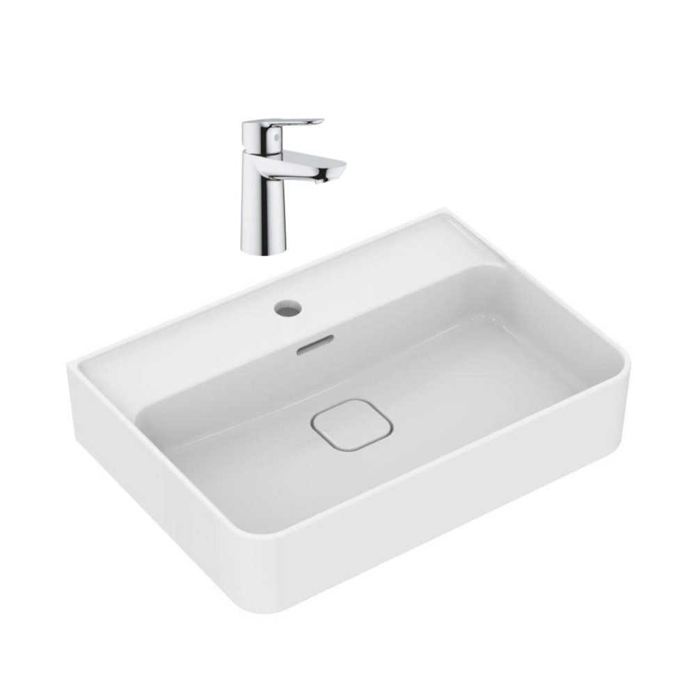 Strada II lavabo 600x430 mm 1 trou + Grohe mitigeur monocommande, 1/2" pour lavabo taille S, chrome (T300001G23330000)