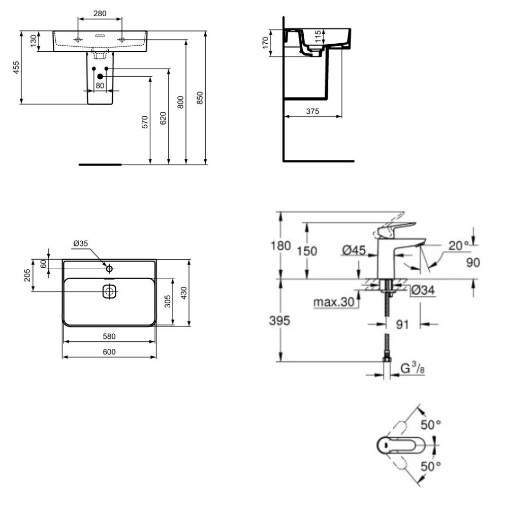 - Largeur lavabo: 60