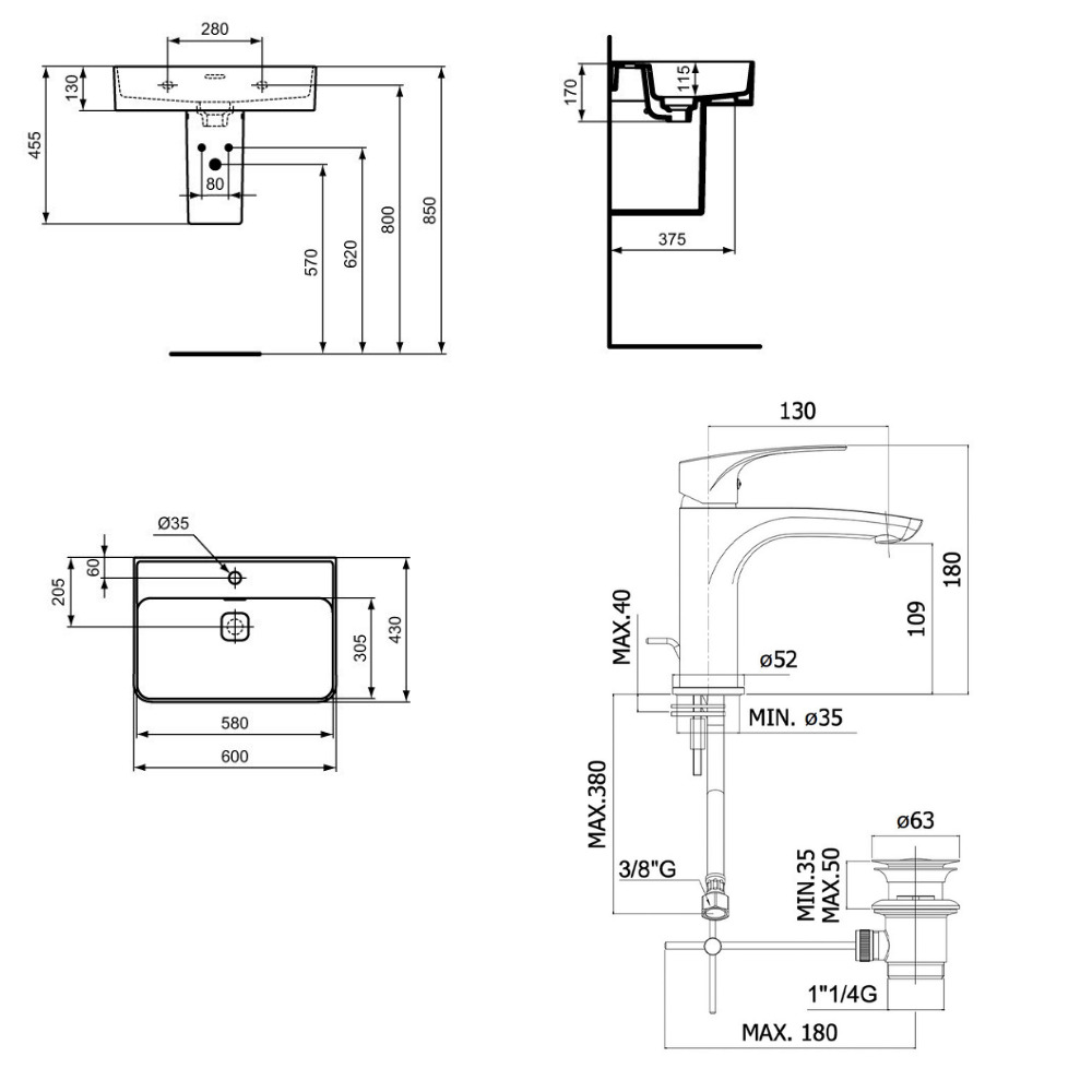 - Largeur lavabo: 60