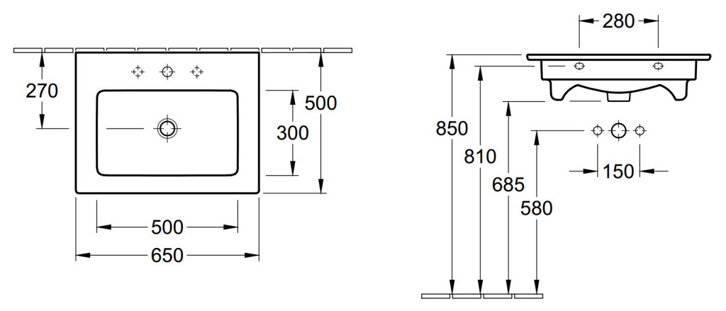 Villeroy & Boch Lavabo VENTICELLO VILLEROY & BOCH, 412466R1, Blanc