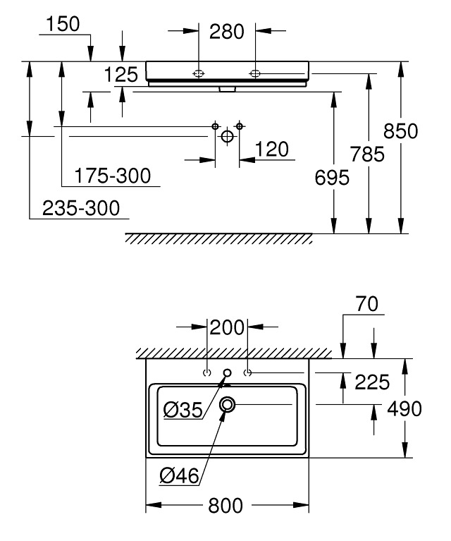 Grohe Cube Ceramic Lavabo 80 cm, 800x490 mm, PureGuard, alpine blanc (3946900H)