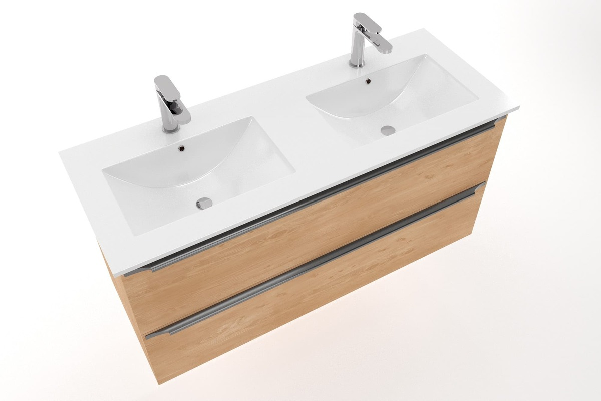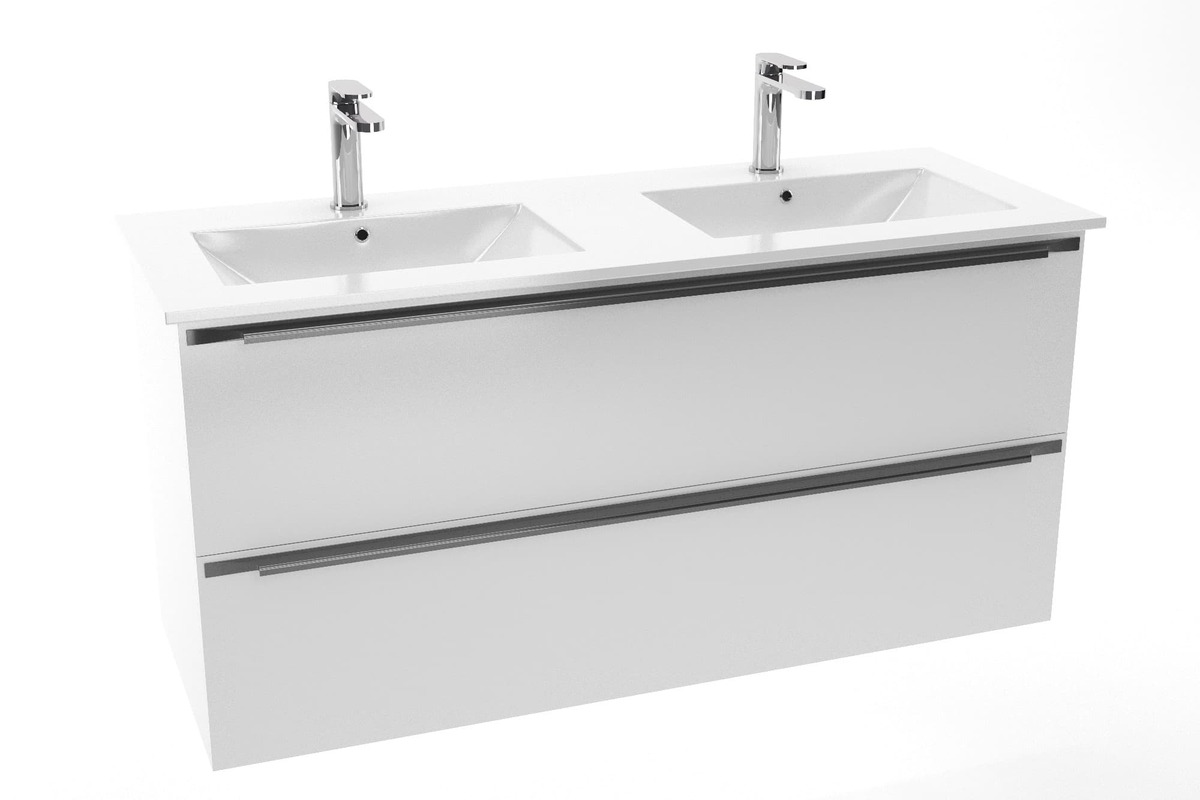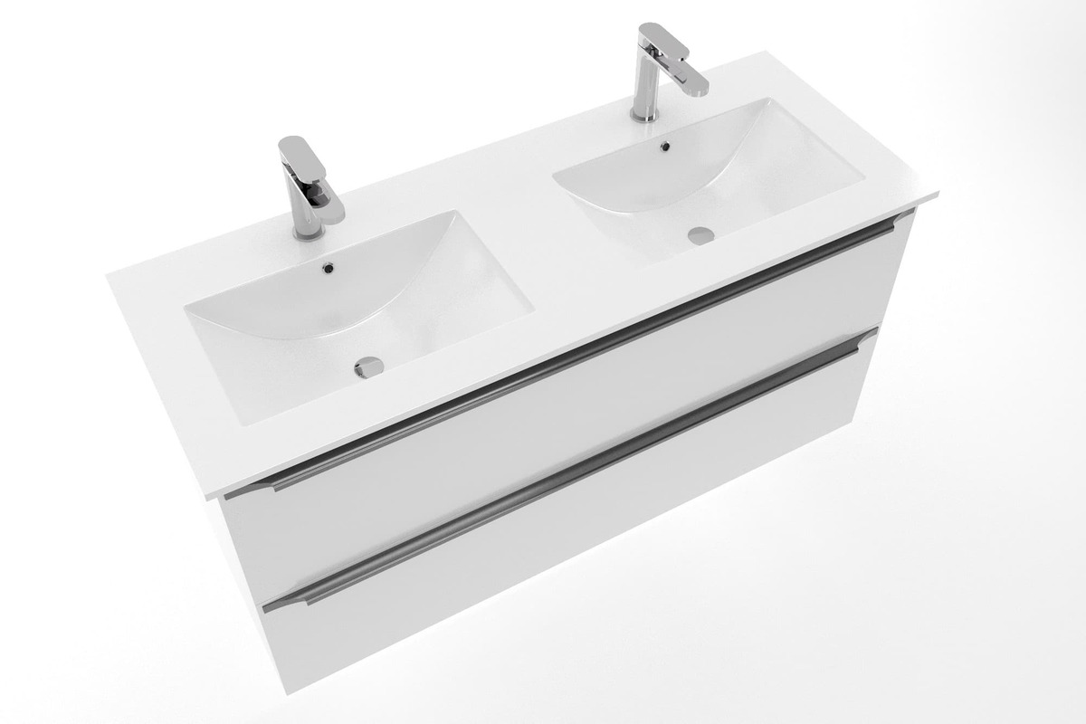 Modena 121x46 cm double vasque en céramique, 2 trous pour robinetterie, blanc (M2N12046)