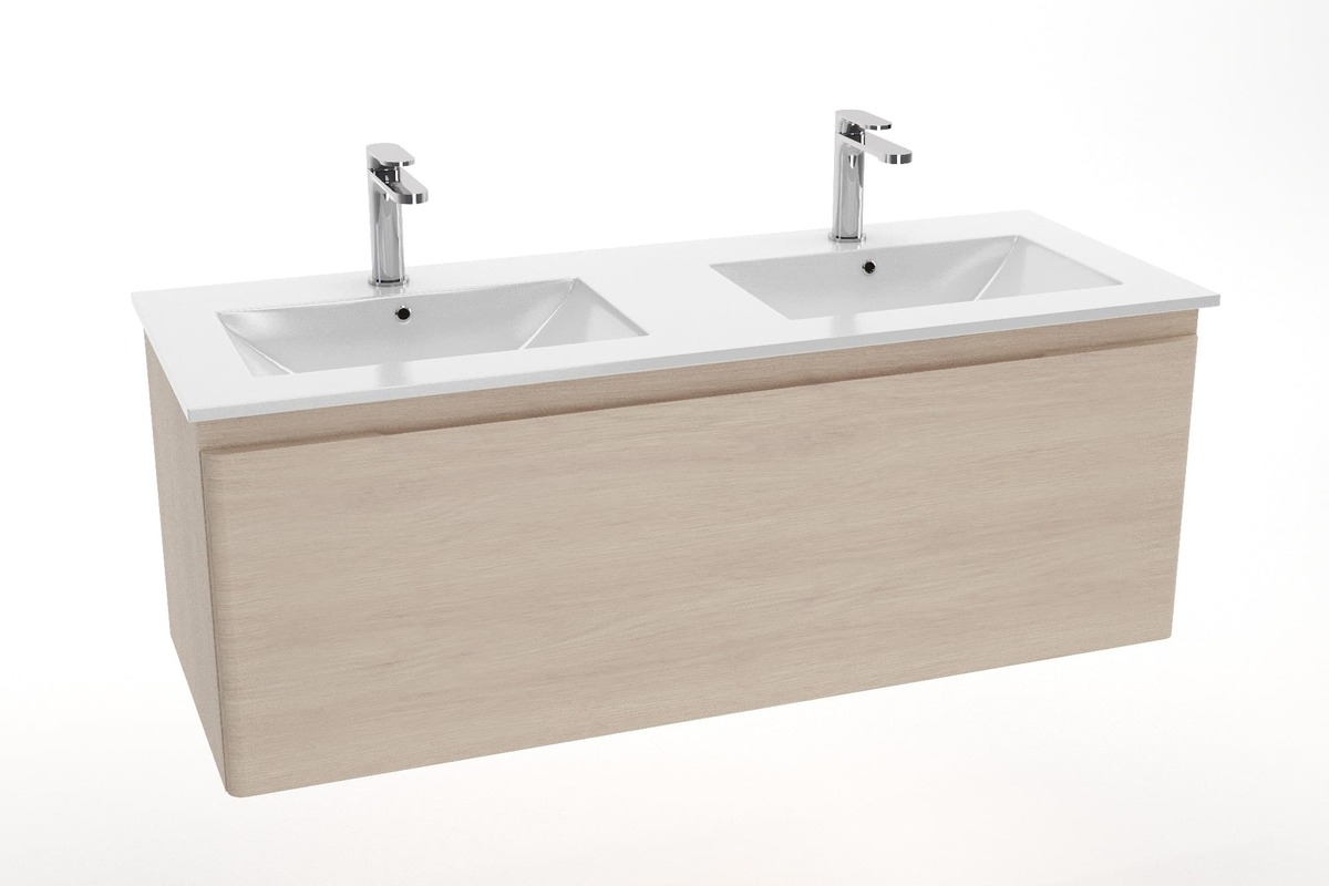 Caractéristiques de la double vasque en céramique 121x46x17,5 cm, 2 trous pour robinetterie, Naturel Modena, blanc (M2N12046) :