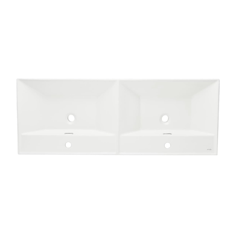 Caractéristiques du meuble double vasque semi-encastré en céramique 120,5x46x14,7 cm, 2 trous de robinetterie au milieu, avec trop-plein, sans siphon, Swiss Aqua Technoogies B-Way, blanc mat (SATBW212046WM) :