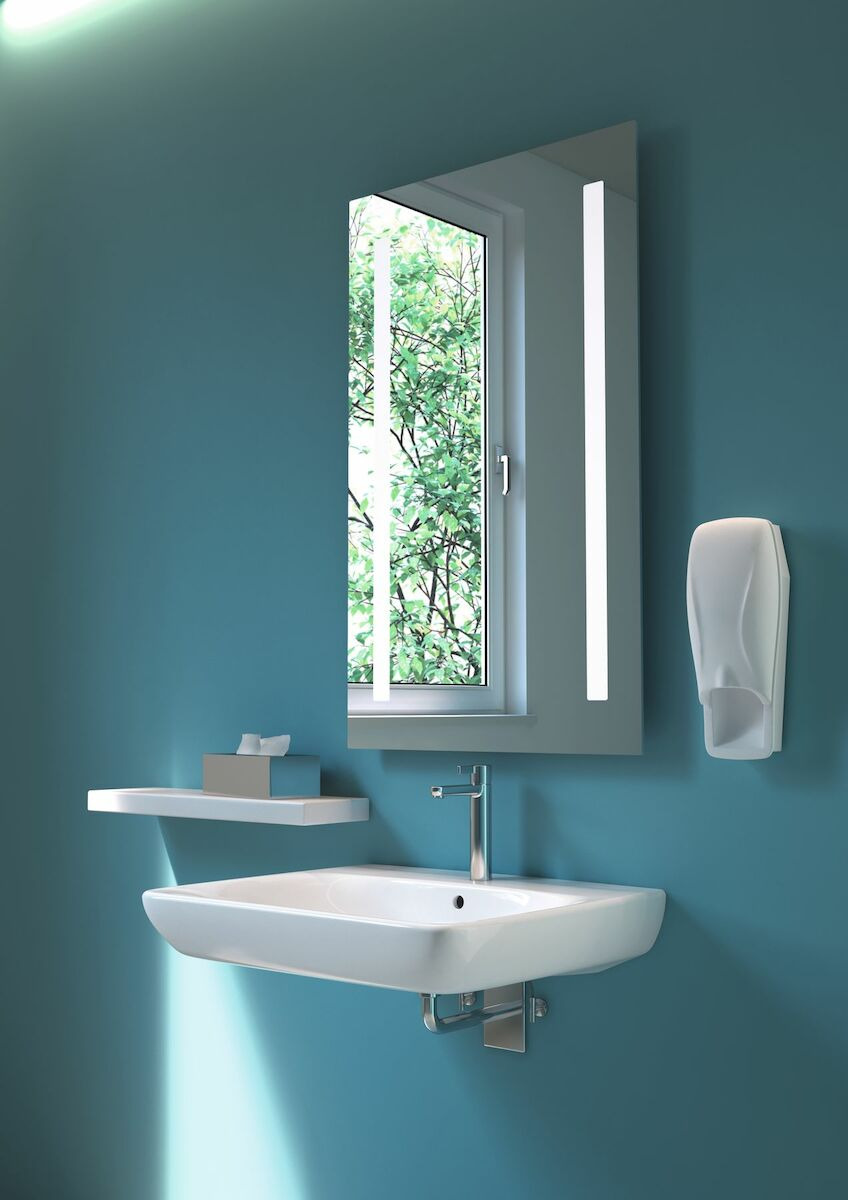Le lavabo PMR 500.302.01.1 est un équipement de forme carrée qui se présente sous un coloris blanc. Si vous recherchez de nouveaux éléments pour votre salle de bain, vous pouvez vous tourner vers ce Geberit Selnova Comfort 500.302.01.1 conçu en céramique sanitaire qui garantit solidité et robustesse. De plus, le lavabo PMR Geberit 500.302.01.1 propose des dimensions de 550 x 550 mm et une profondeur de 150 mm. Par conséquent, le lavabo avec trop plein 500.302.01.1 convient également aux personnes en fauteuil roulant qui pourront effectuer leurs soins en toute aisance. Techniquement, le lavabo Geberit 500.302.01.1 est muni d’un seul trou pour la robinetterie et propose un vidage trop-plein qui évite les débordements en cas de mauvaise manipulation. Avec un côté avant de forme ergonomique, ce lavabo Geberit 500.302.01.1 permettra aux personnes à mobilité réduite d’accéder facilement au robinet.