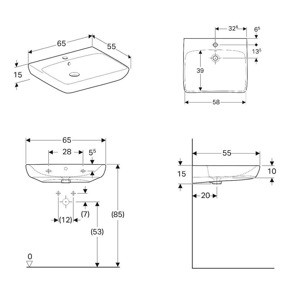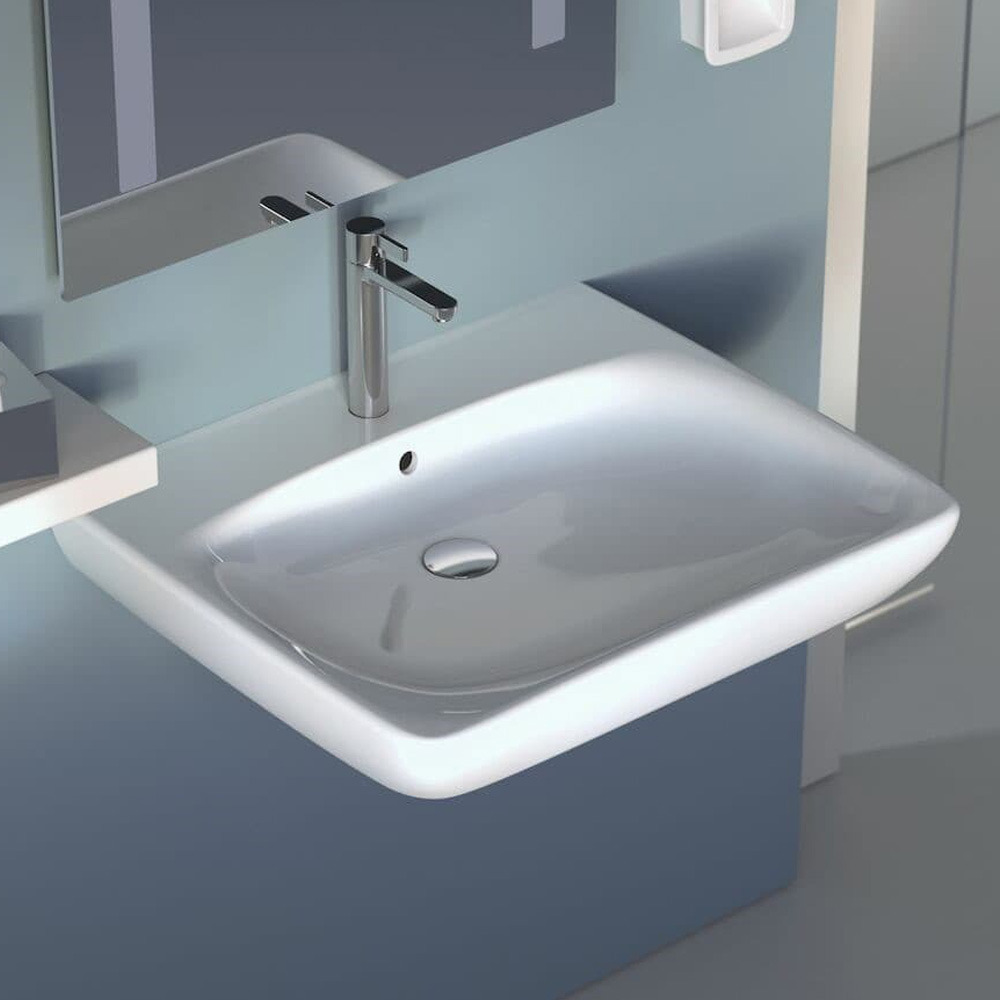 Geberit Selnova Comfort Lavabo PMR 650x550 mm avec perçage pour robinetterie + trop-plein, Blanc (501.463.00.7)