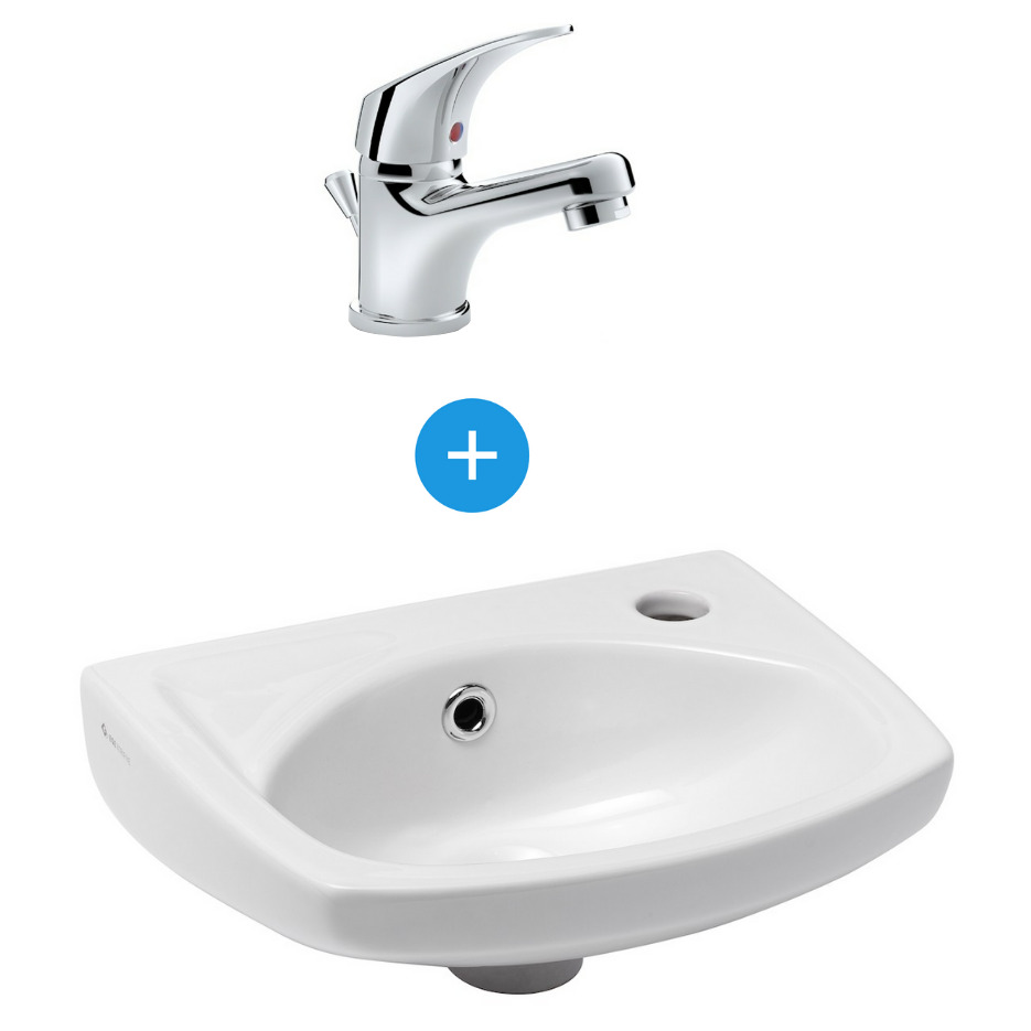 Lave-mains avec trou pour robinetterie sur la droite, trop plein, 35x28 cm, Blanc (EUR913) :