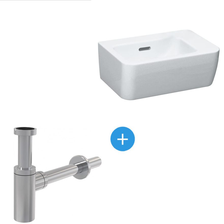 Ensemble Pro Lave-mains 36x25 cm, Blanc + Siphon Alca en métal Chromé (H8169550001061-SET)
