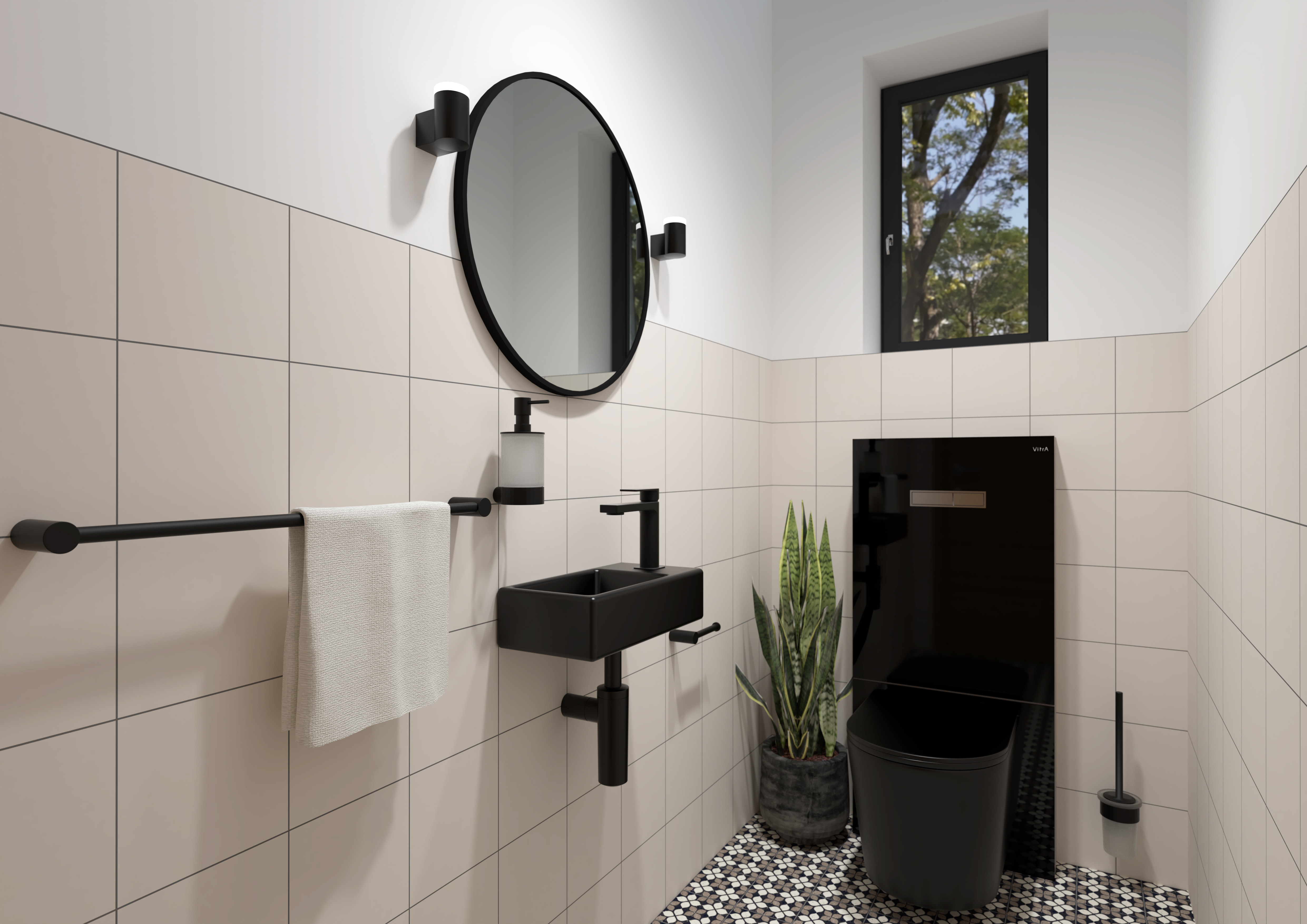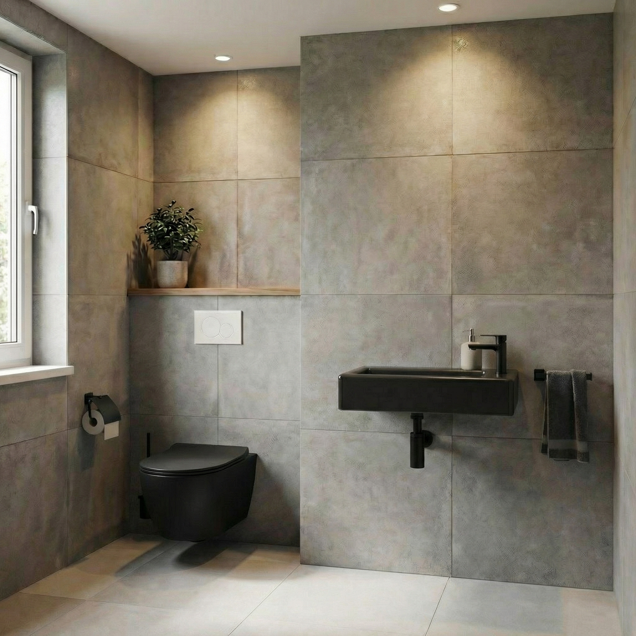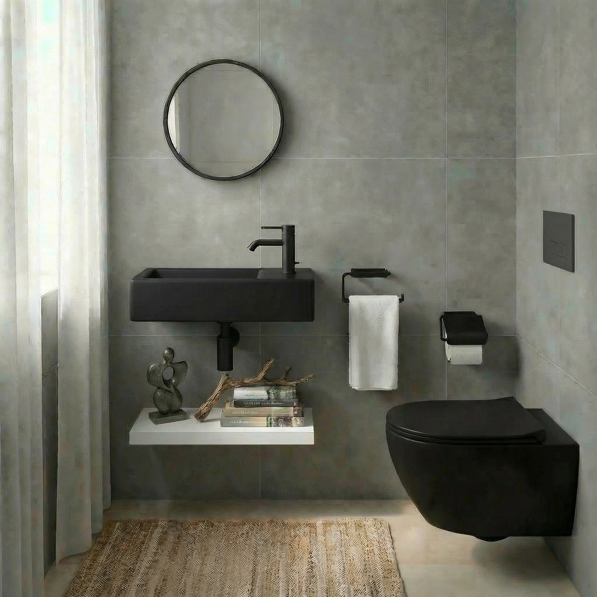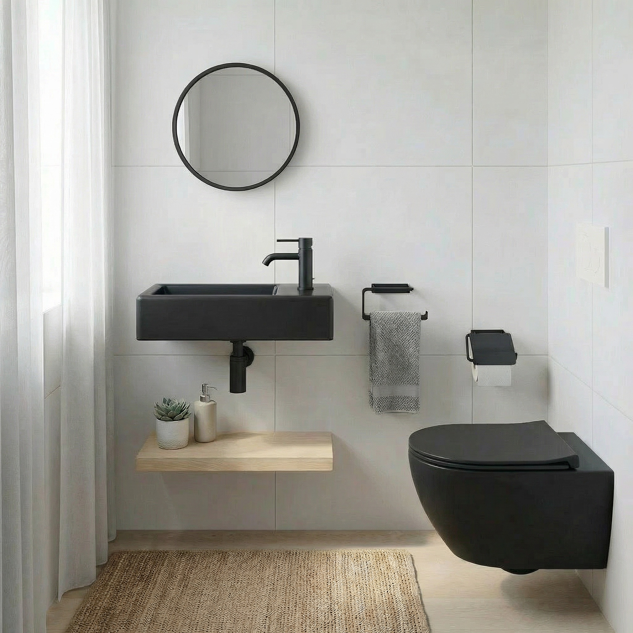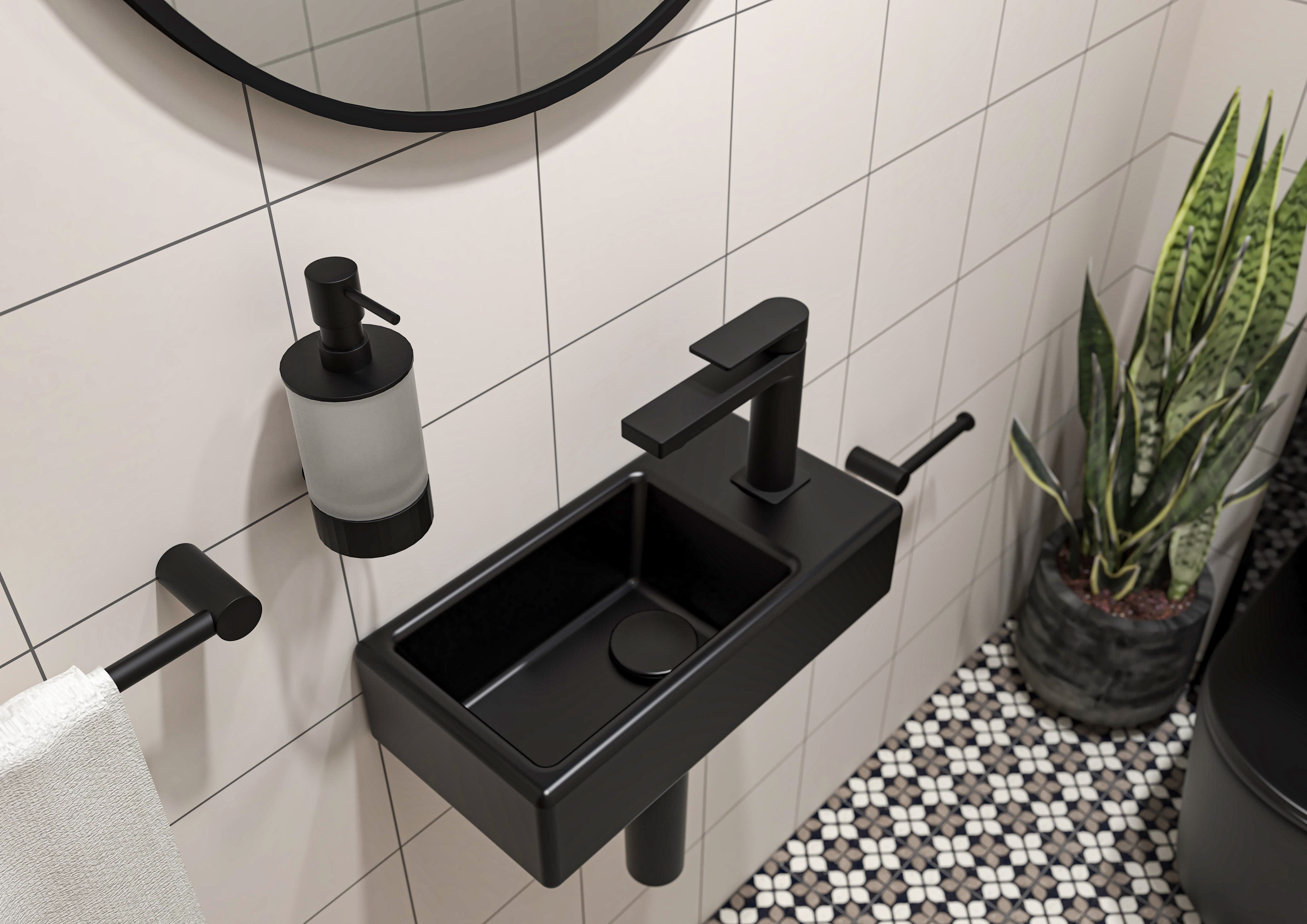 Compact et moderne, ce lave-mains mural SAT Brevis en finition noir mat est parfait pour les toilettes, WC ou petites salles d’eau où l’espace est limité.