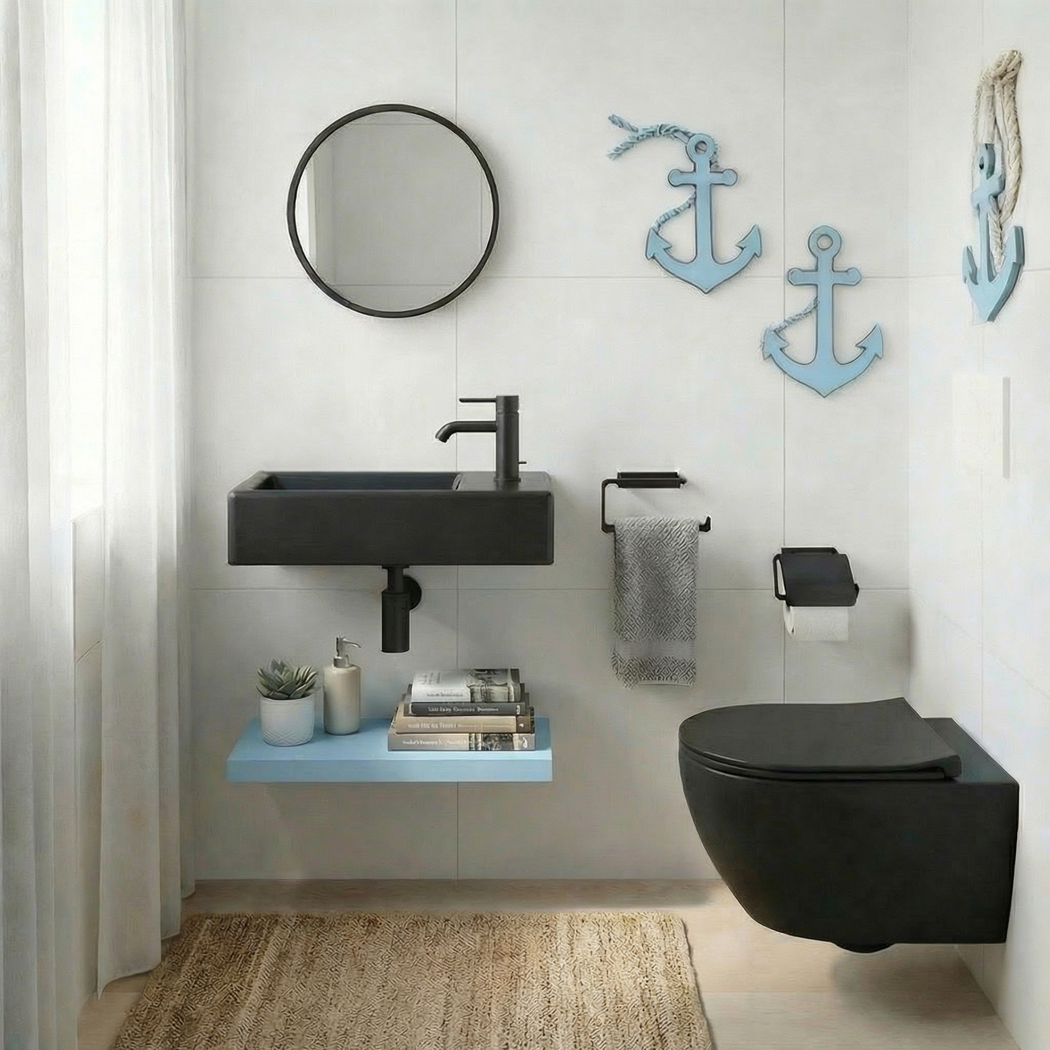 Lave-mains suspendu Brevis Noir 40,5 × 20,5 × 10,5 cm – trou de robinetterie à droite (SATBRE4020SRBKM)