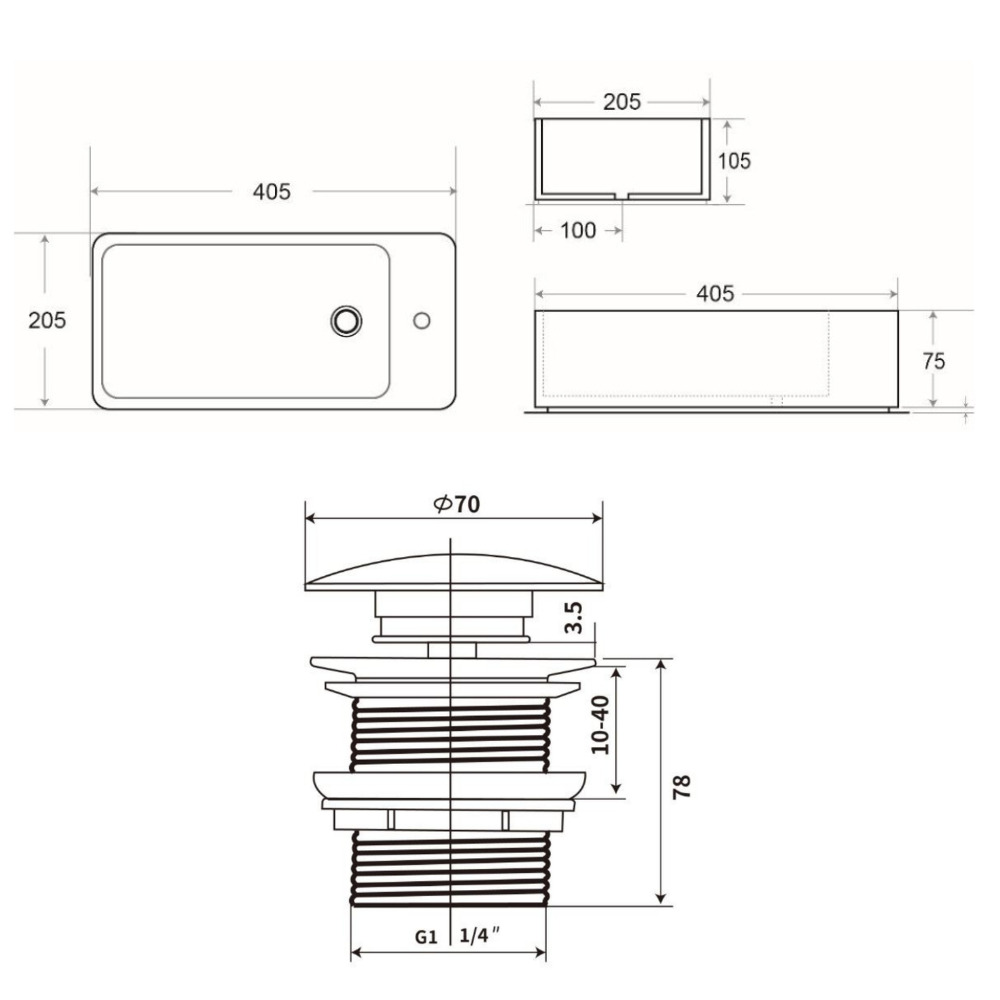 • Pour lavabos et vasques sans trop plein.
