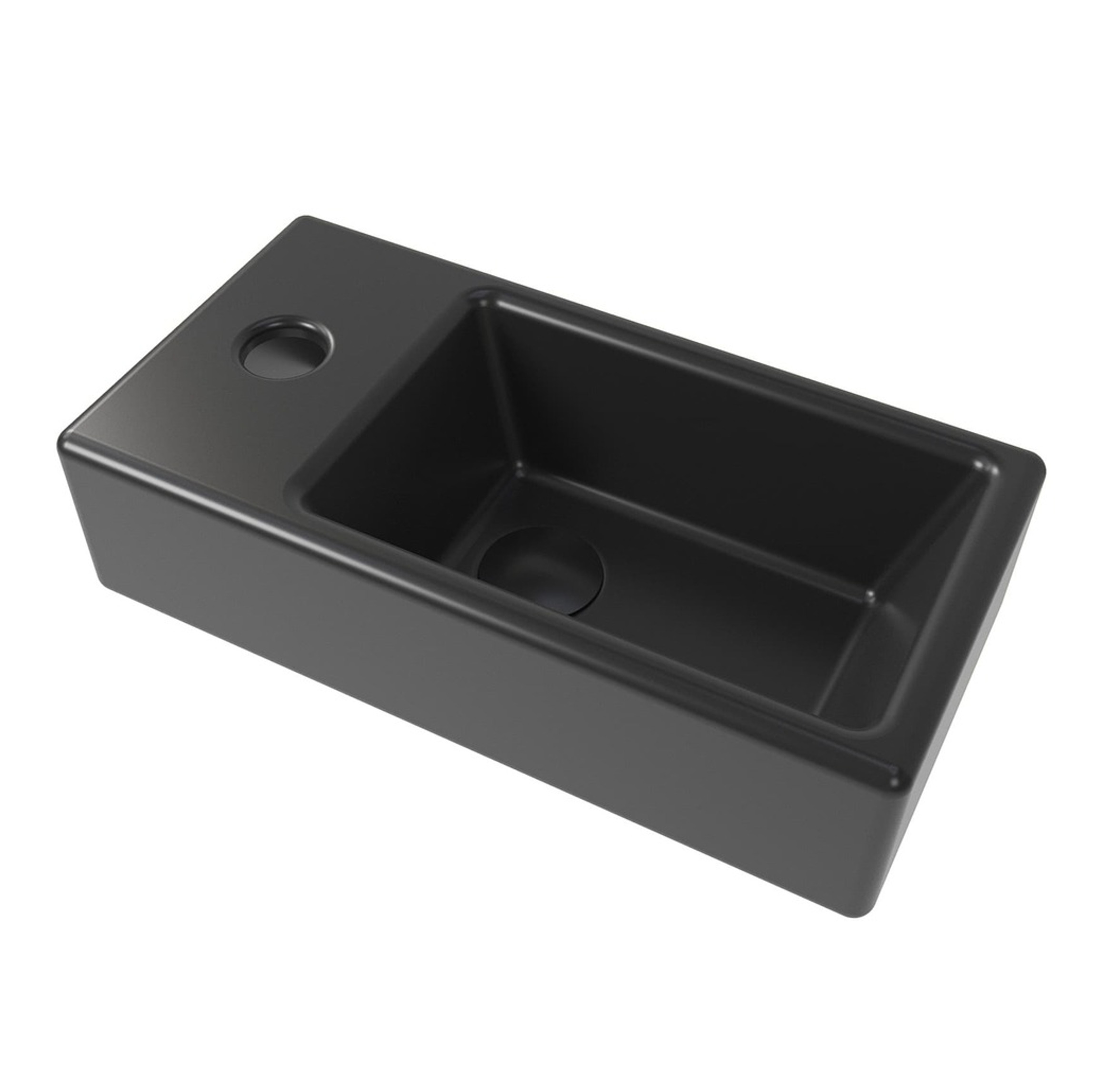 Swiss Aqua Technologies Brevis Lave-mains suspendu avec trou pour robinetterie à gauche, 40,5x20,5x10,5cm, noir (SATBRE4020SLBKM) :