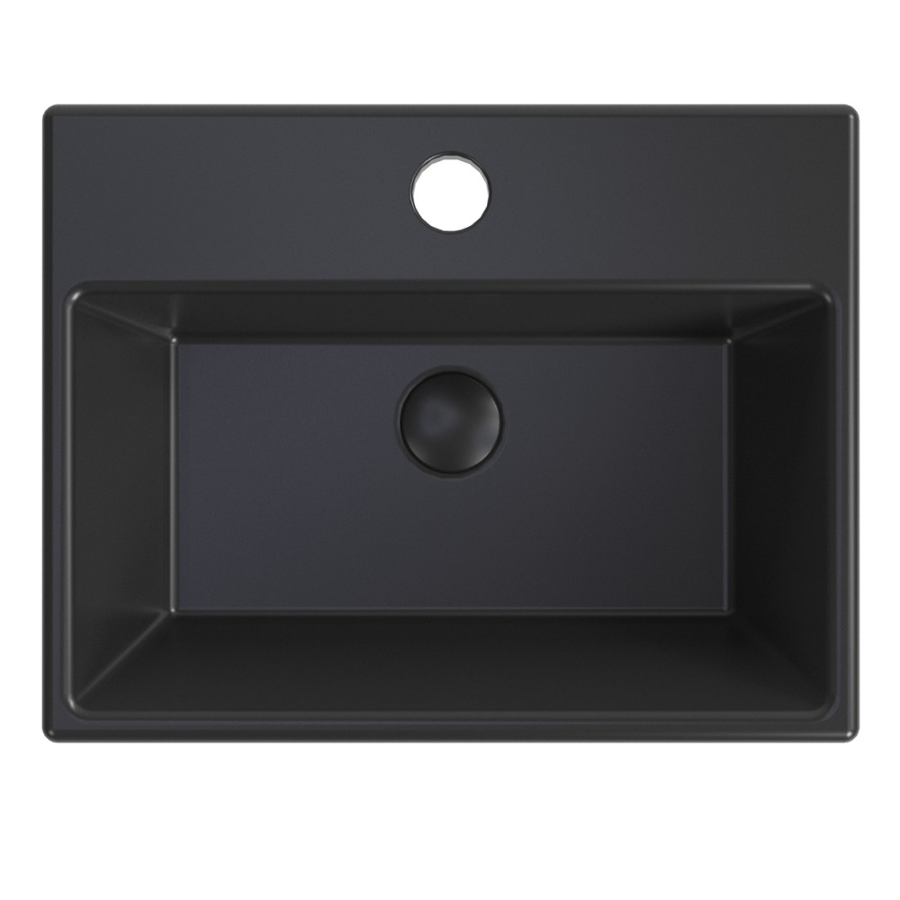 Swiss Aqua Technologies Brevis Lave-mains suspendu avec trou pour robinetterie au milieu, 38,5x30,5x10,5cm, Noir mat (SATBRE3830SBKM) :