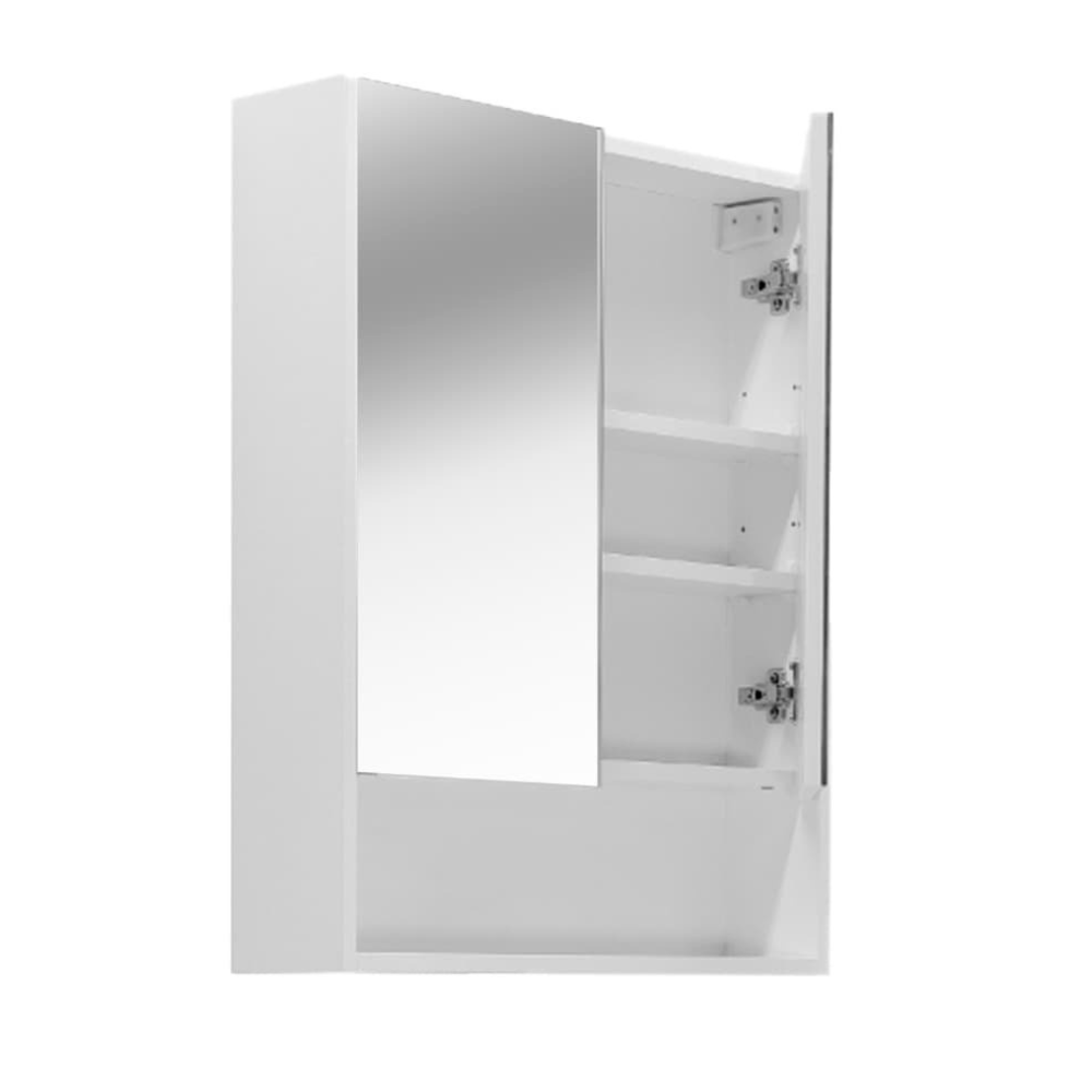 Caractéristiques de l'armoire de salle de bain assemblée 60x75 cm, stratifié, 4 étagères, miroir blanc, Naturel Lucca (LUCCA60CABW) :