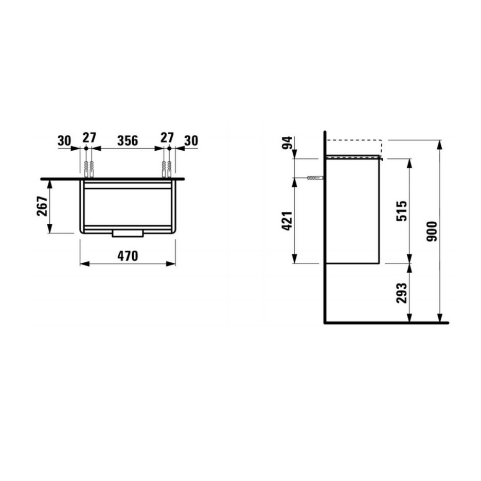 Laufen Case Meuble sous lavabo suspendu 47x53x26,5 cm, 1 porte ouverture à droite, Blanc mat (H4021021102601)