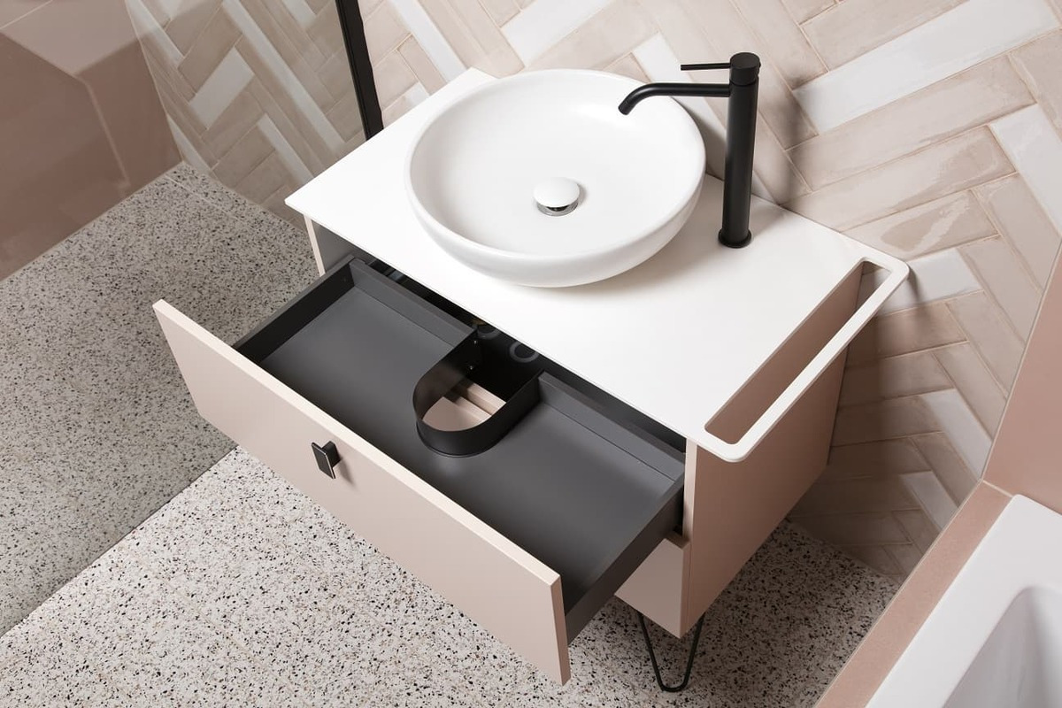 Siko Meuble de salle de bain sous vasque avec porte-serviette Naturel Art Déco 68x55x45 cm Rose Pastel (ARTDECO60RBBU)