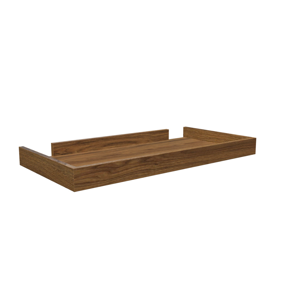 Le plan vasque DO8050DT, avec son imitation de chêne Charleston brun foncé, offre une profondeur de couleur qui rappelle celle du noyer. Ce plan vasque se distingue par un rendu naturel mettant en évidence des transitions frappantes entre les parties les plus claires et les plus sombres. De plus, la finition Feelwood Brushed ajoute une texture agréable, évoquant la sensation d'une surface soigneusement travaillée et récemment sablée.