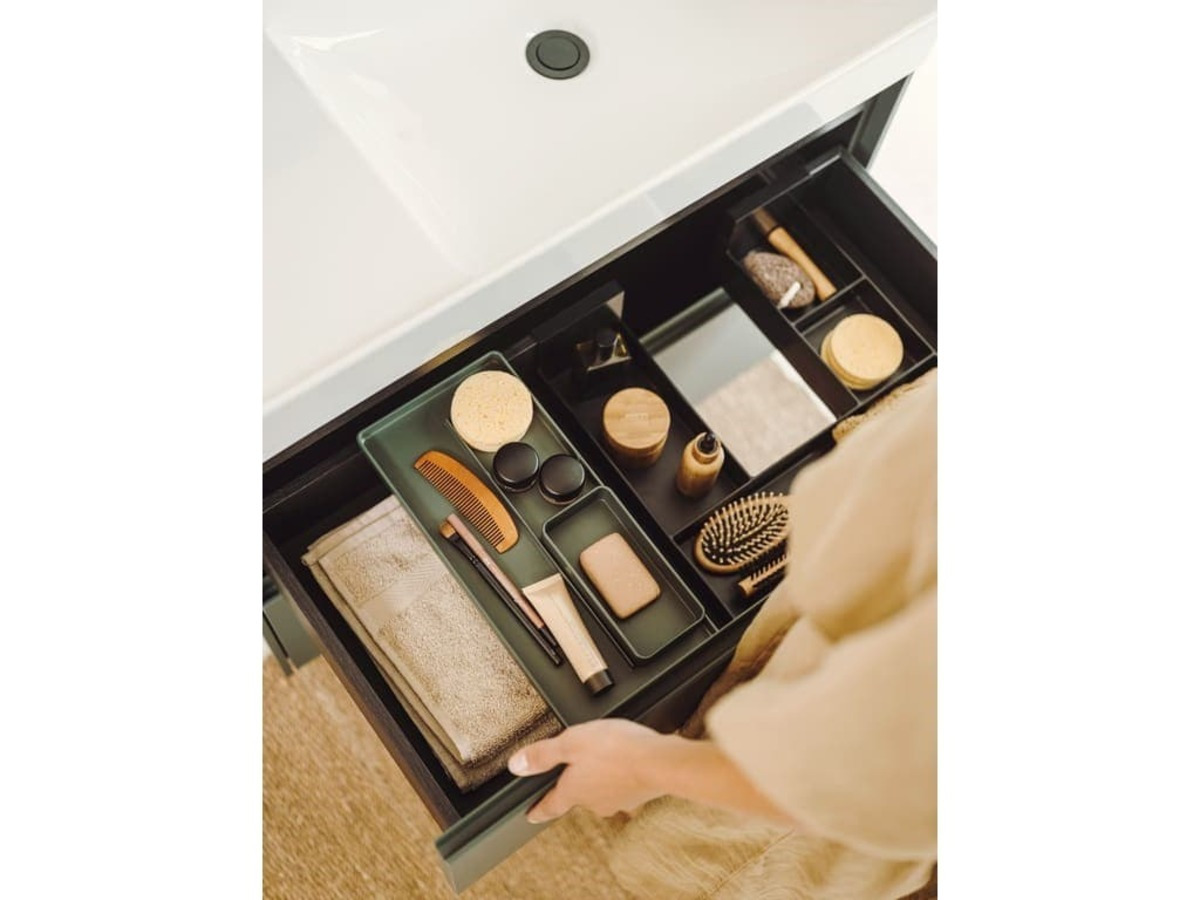 Caractéristiques du Ona meuble bas pour vasque à poser à droite avec deux tiroirs avec fermeture amortie, vert mat (A857629513):