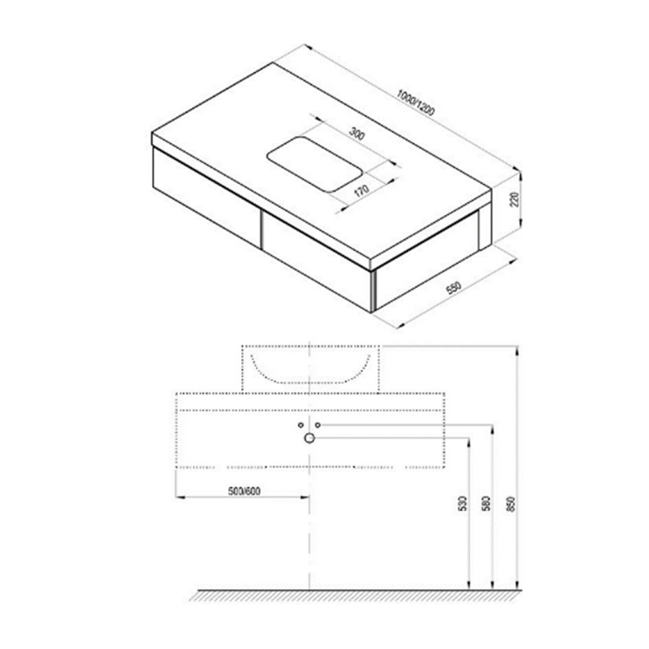Avec ses dimensions généreuses de 120 cm de largeur, 55 cm de hauteur et 22 cm de profondeur, ce meuble offre un espace de rangement spacieux pour vos articles de salle de bains.