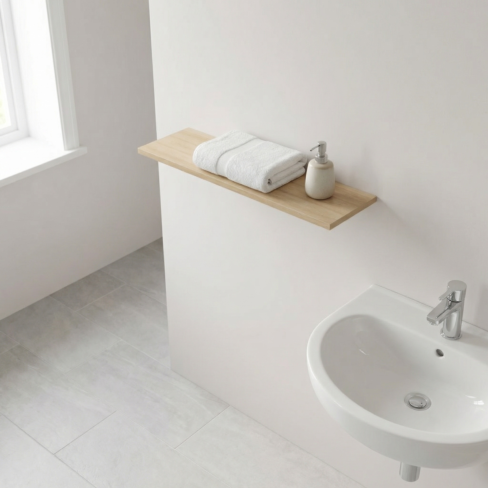 Fabriqué en stratifié résistant à l’humidité, il est adapté à un usage quotidien en environnement sanitaire. Idéal pour finaliser un meuble, créer une surface d’appoint ou compléter un aménagement existant.