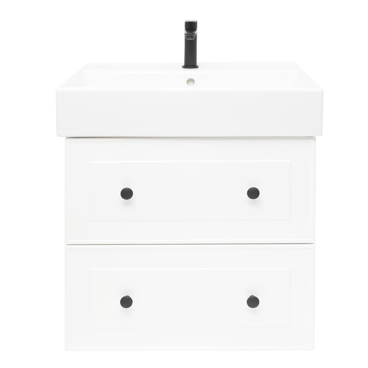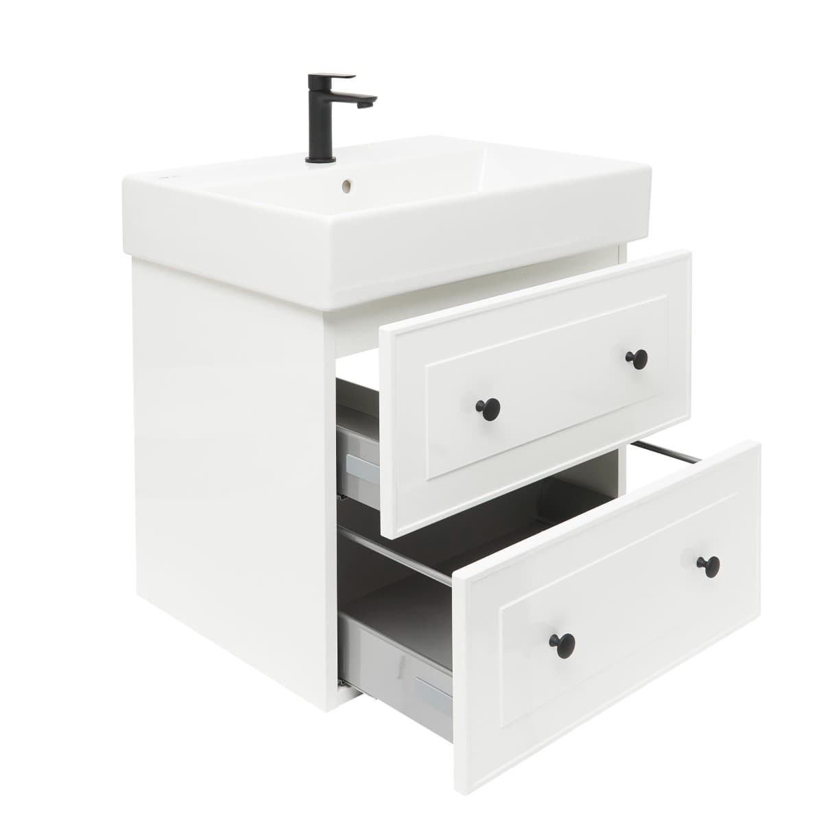 Meuble de salle de bain suspendu avec lavabo en céramique, meuble de couleur blanche avec surface brillante, mesurant 60x45x46 cm. Surface stratifiée.