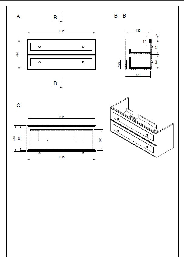 - Meuble de salle de bain sous lavabo Naturel Forli blanc - dimensions 120x45x46 cm.