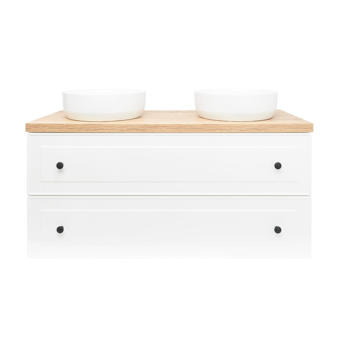 - 1 Plan vasques Naturel Dolce 120x8x50 cm chêne Halifax avec découpes pour 2 vasques.