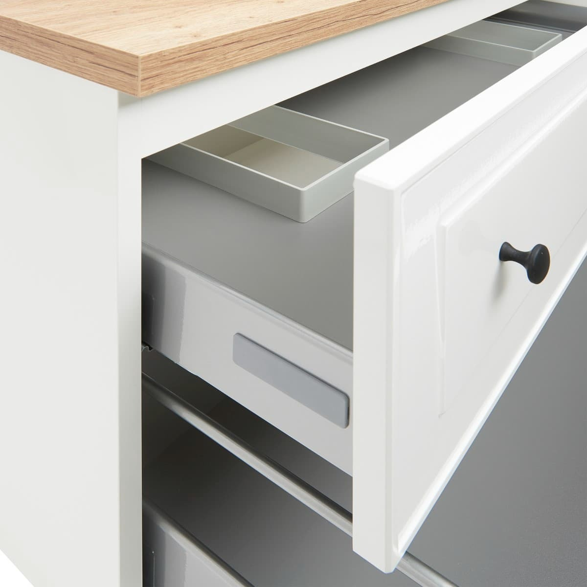 Quelques accessoires noirs apporteront du contracte à ce meuble, comme un mitigeur noir ou un miroir noir, il souligneront le caractère de la salle de bain.