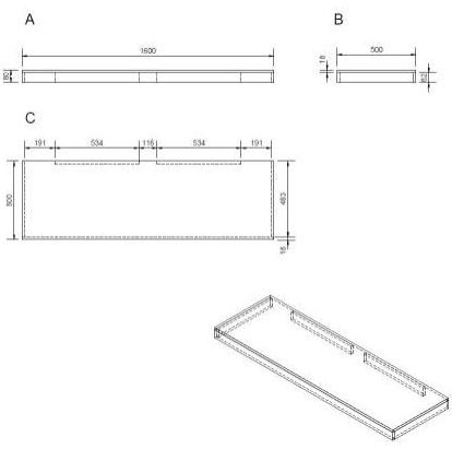 Plaque sous le lavabo. Le trou pour le vidage du lavabo doit être réalisé en fonction de la cuvette achetée. Les supports pour accrocher la planche au mur ne sont pas inclus dans la livraison