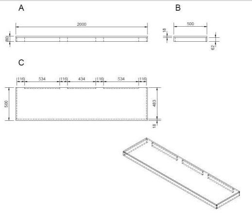 Plaque sous le lavabo. Le trou pour le vidage du lavabo doit être réalisé en fonction de la cuvette achetée. Les supports pour accrocher la planche au mur ne sont pas inclus dans la livraison