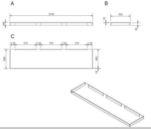 Plaque sous le lavabo. Le trou pour le vidage du lavabo doit être réalisé en fonction de la cuvette achetée. Les supports pour accrocher la planche au mur ne sont pas inclus dans la livraison