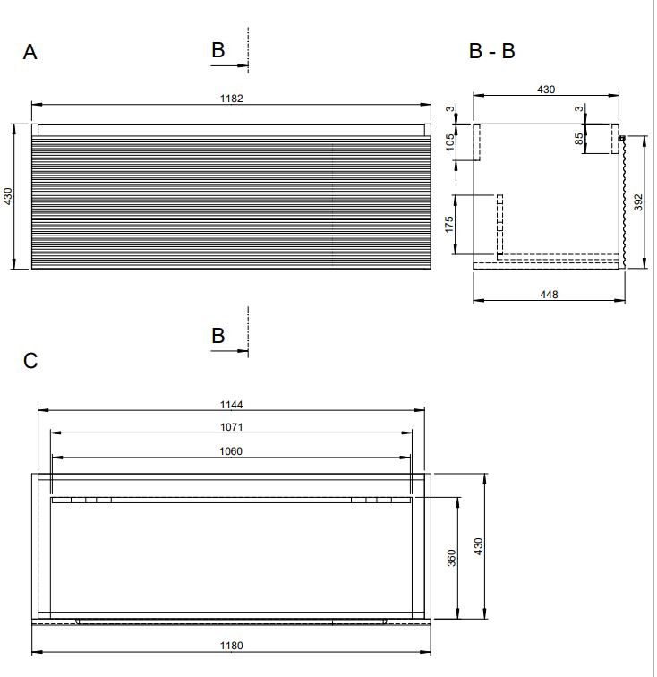 Naturel Meuble sous lavabo strié pour salle de bain Naturel Savona 118x43x44,8 cm gris mat (SAVONA120GMD)