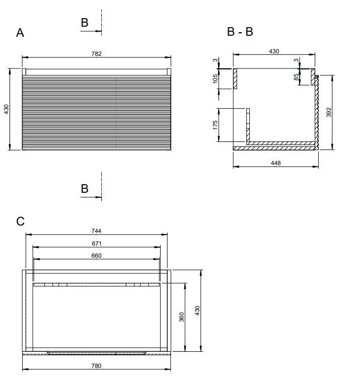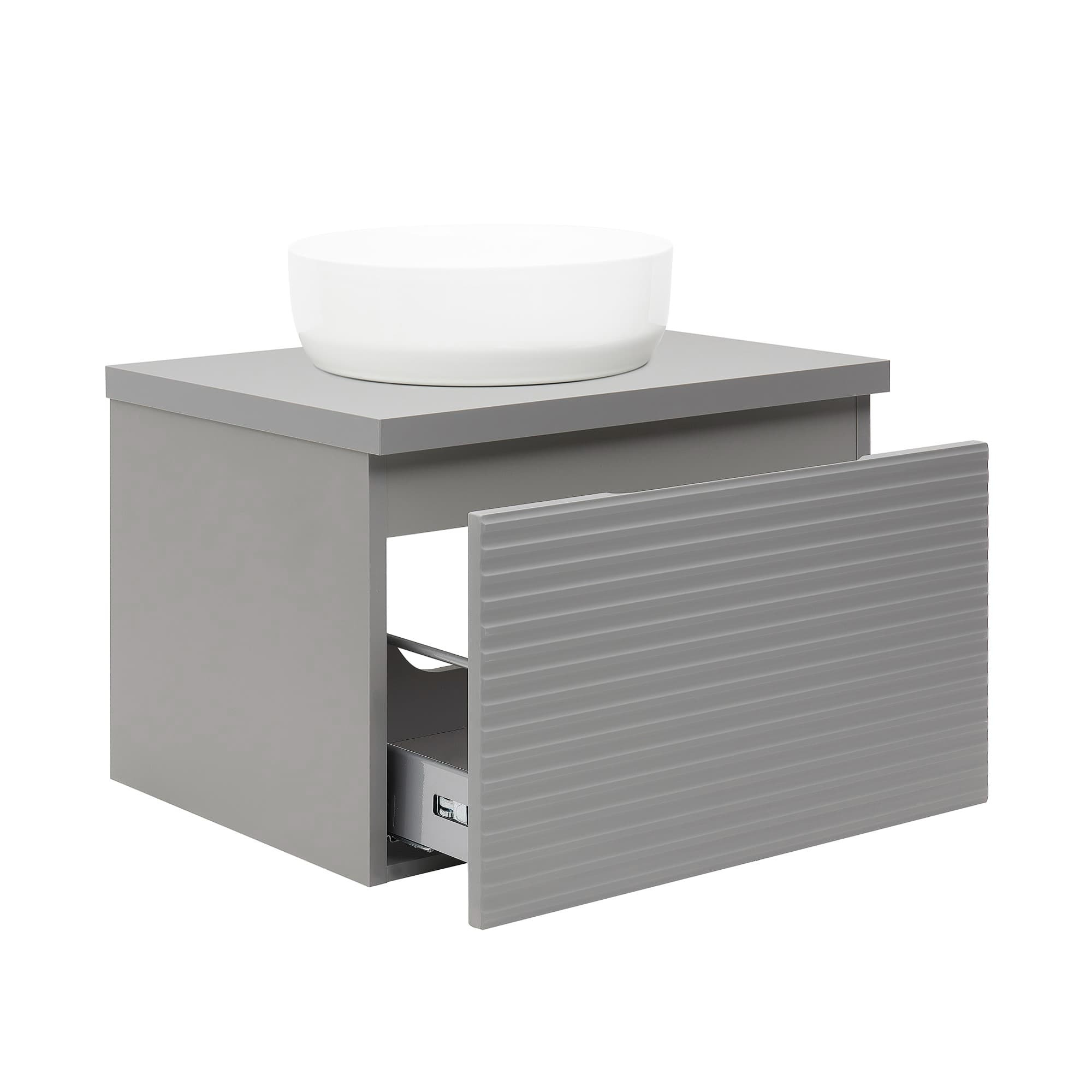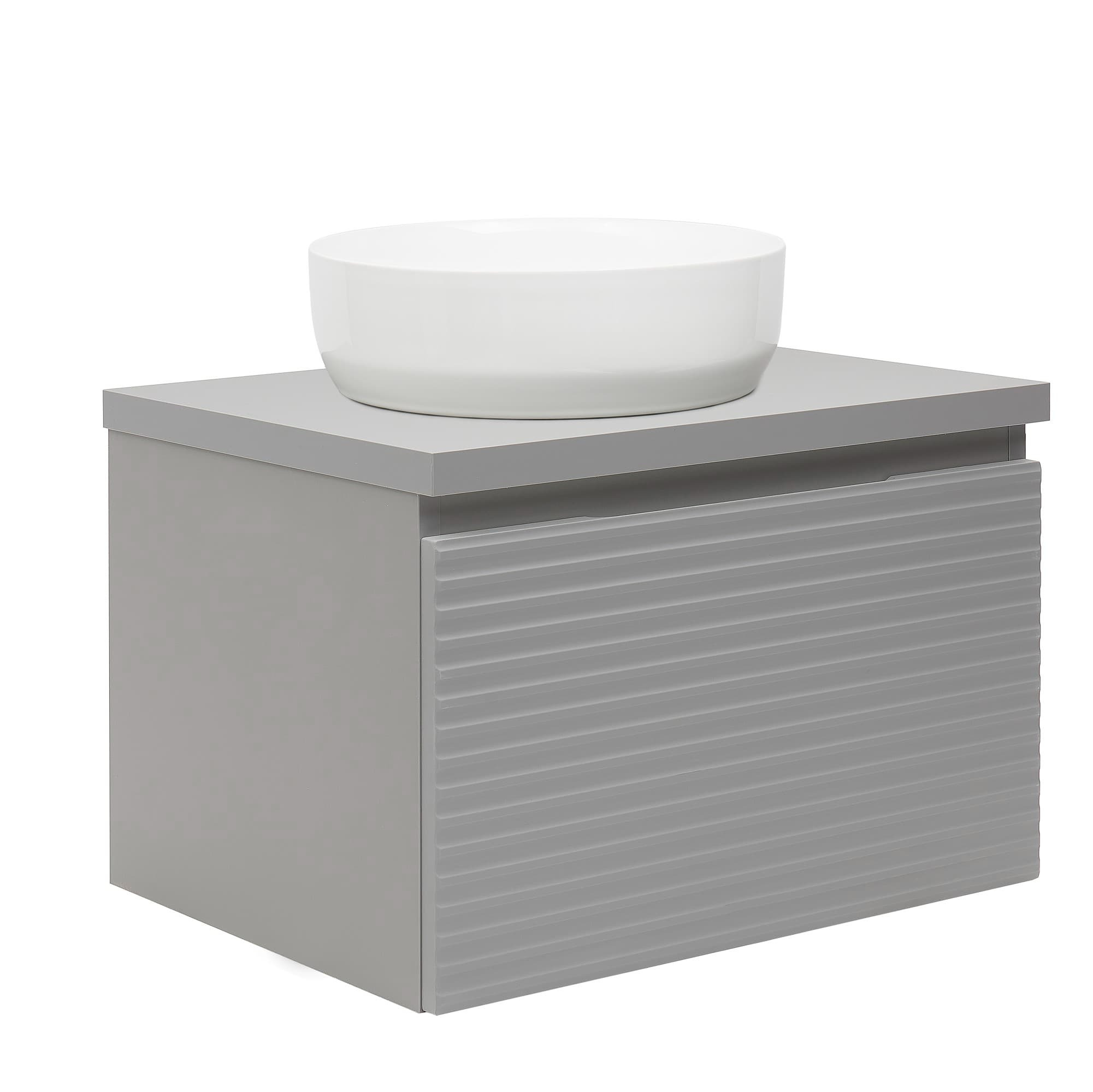 - Meuble de salle de bain suspendu sous lavabo de couleur grise avec surface mate, mesurant 78x43x44,8 cm. Surface stratifiée.