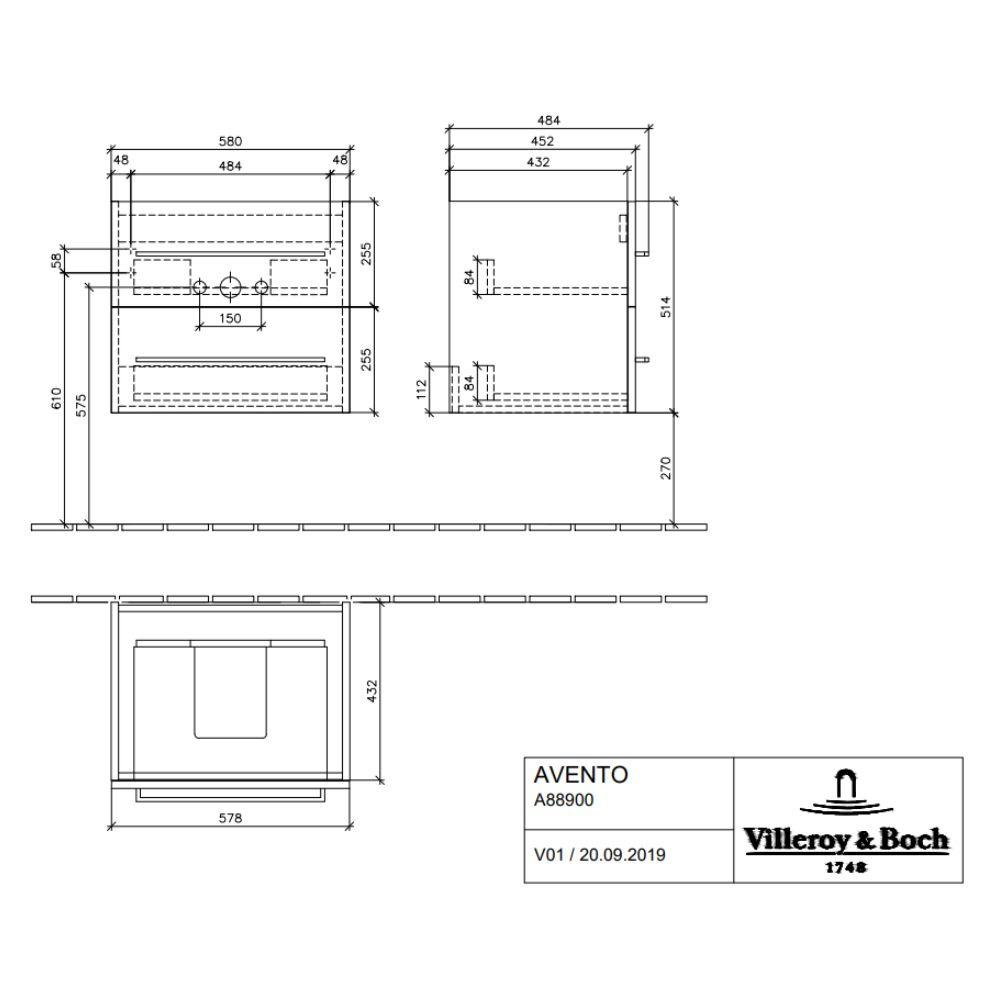 Caractéristiques du Meuble sous plan Avento, 2 tiroirs sur rails, 580 x 514 x 484 mm, Crystal White (A88900B4):
