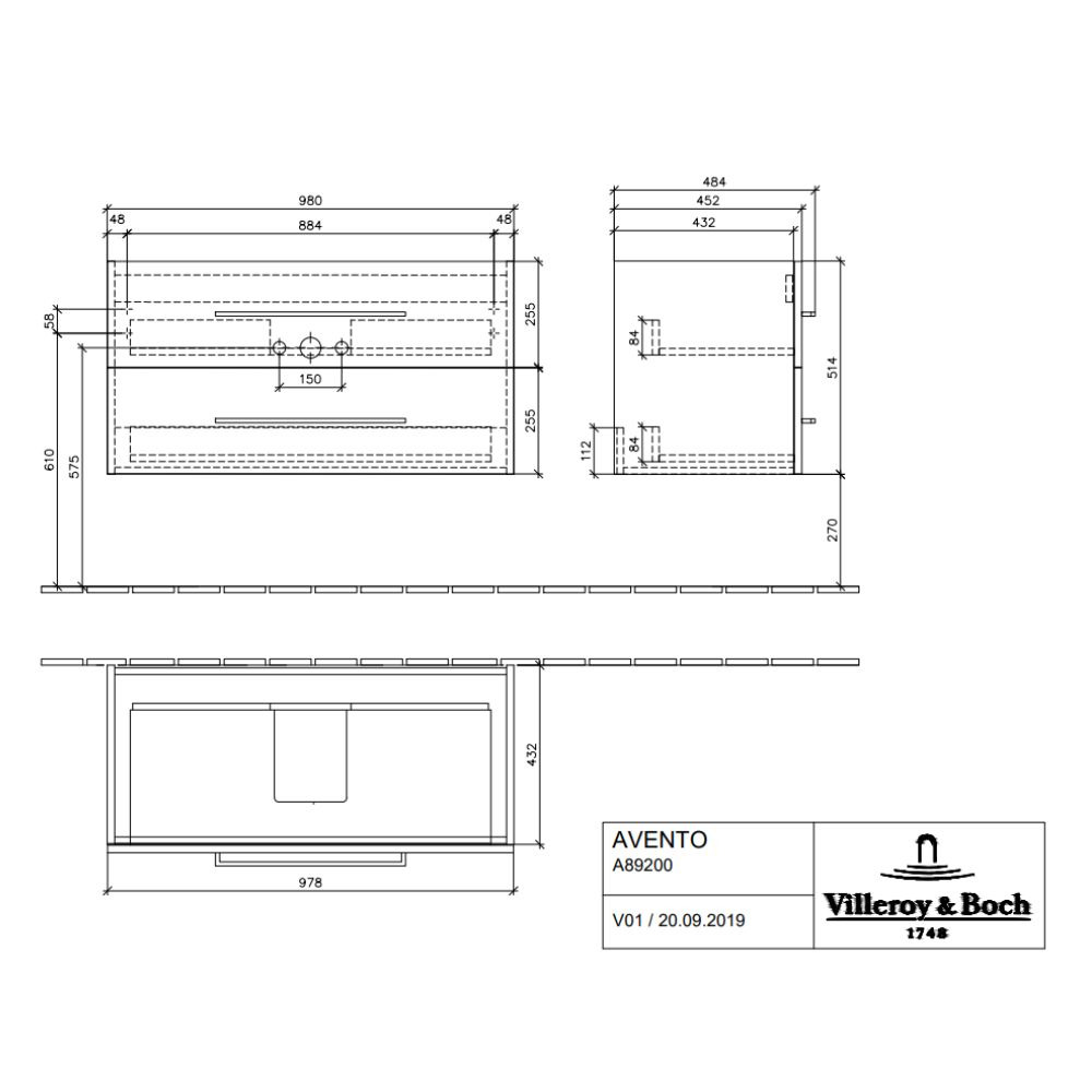 Caractéristiques du Meuble sous plan Avento, 2 tiroirs sur rails, 980 x 514 x 484 mm, Crystal Black (A89200B3):