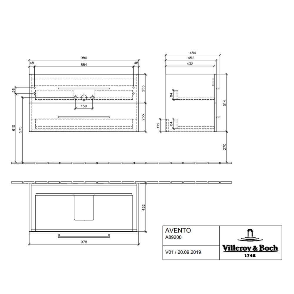 Caractéristiques du Meuble sous plan Avento, 2 tiroirs sur rails, 976 x 514 x 484 mm, Oak Kansas (A89200RH):