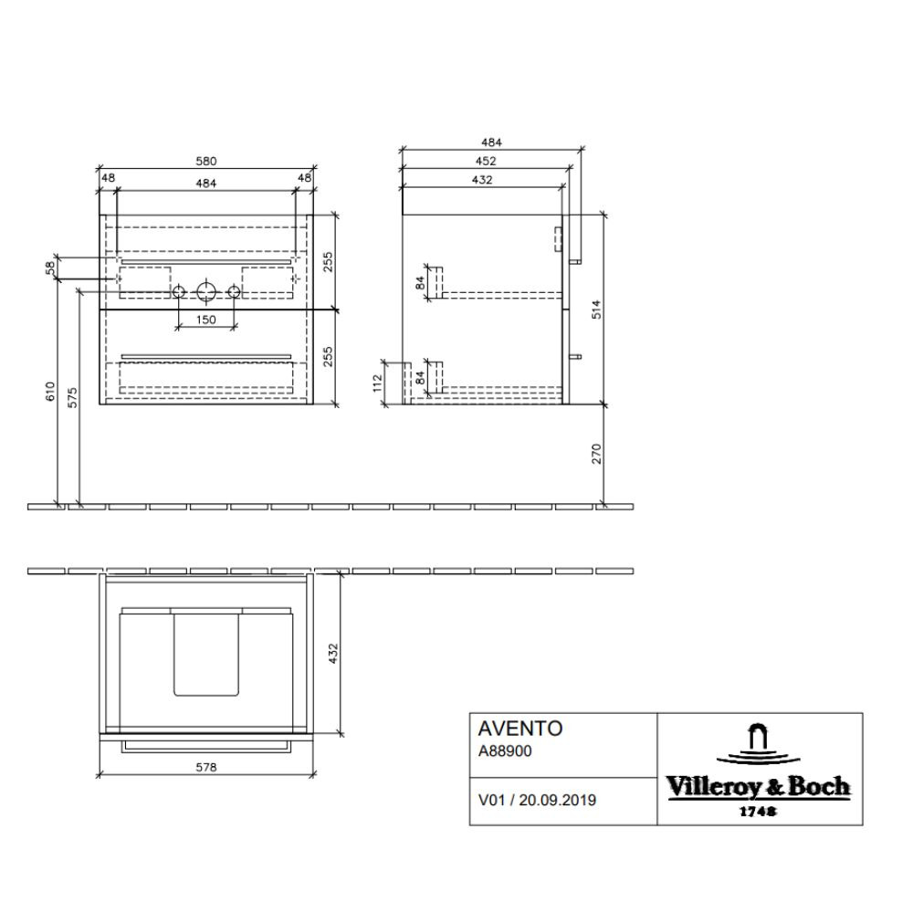 Caractéristiques du Meuble sous plan Avento , 2 tiroirs sur rails, 576 x 514 x 484 mm, Arizona Oak (A88900VH):