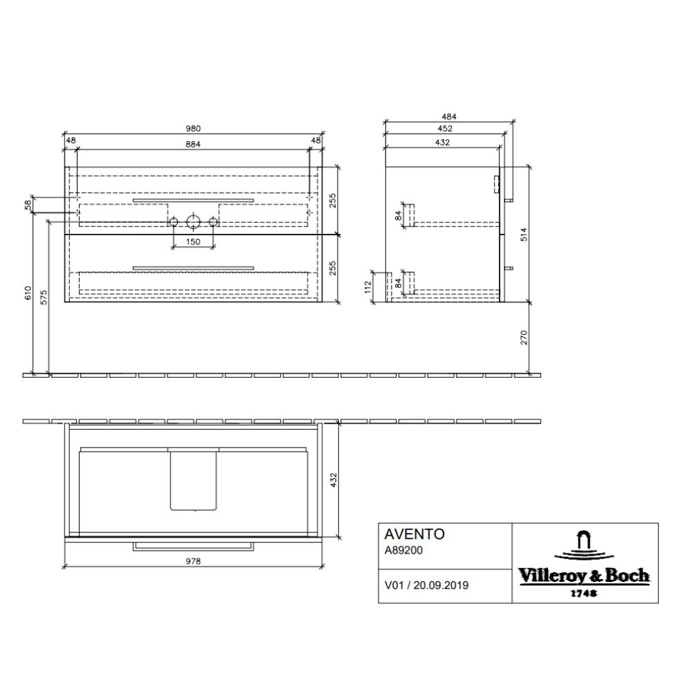 Caractéristiques du Meuble sous plan Avento , 2 tiroirs sur rails, 976 x 514 x 484 mm, Arizona Oak (A89200VH):