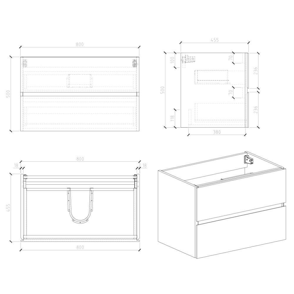Verona 80x50x45,5 cm meuble de salle de bain mural, sans lavabo, bois clair (VERONA80SDBU)