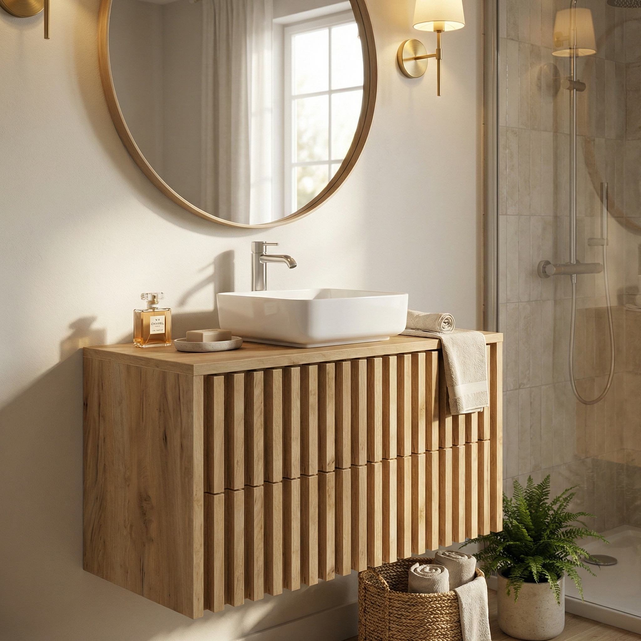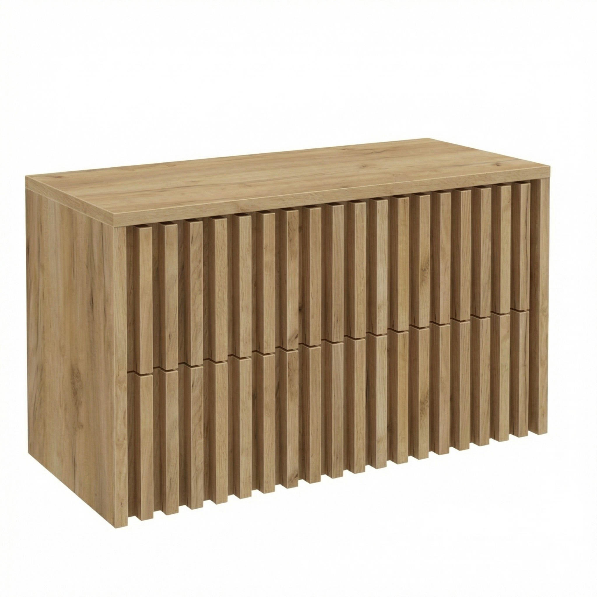 Nous vous présentons notre nouveauté, le meuble vasque de salle de bain SAT Delano en chêne mat avec 2 tiroirs + sa plaque de recouvrement pour y poser une vasque (vasque à acheter séparément). Ce meuble n'est pas seulement un élément pratique et fonctionnel de votre salle de bain, mais apporte également à votre intérieur une touche de design d'intérieur contemporain - lattes verticales.