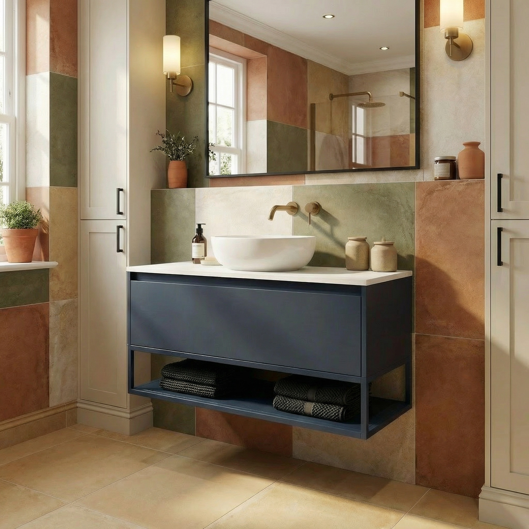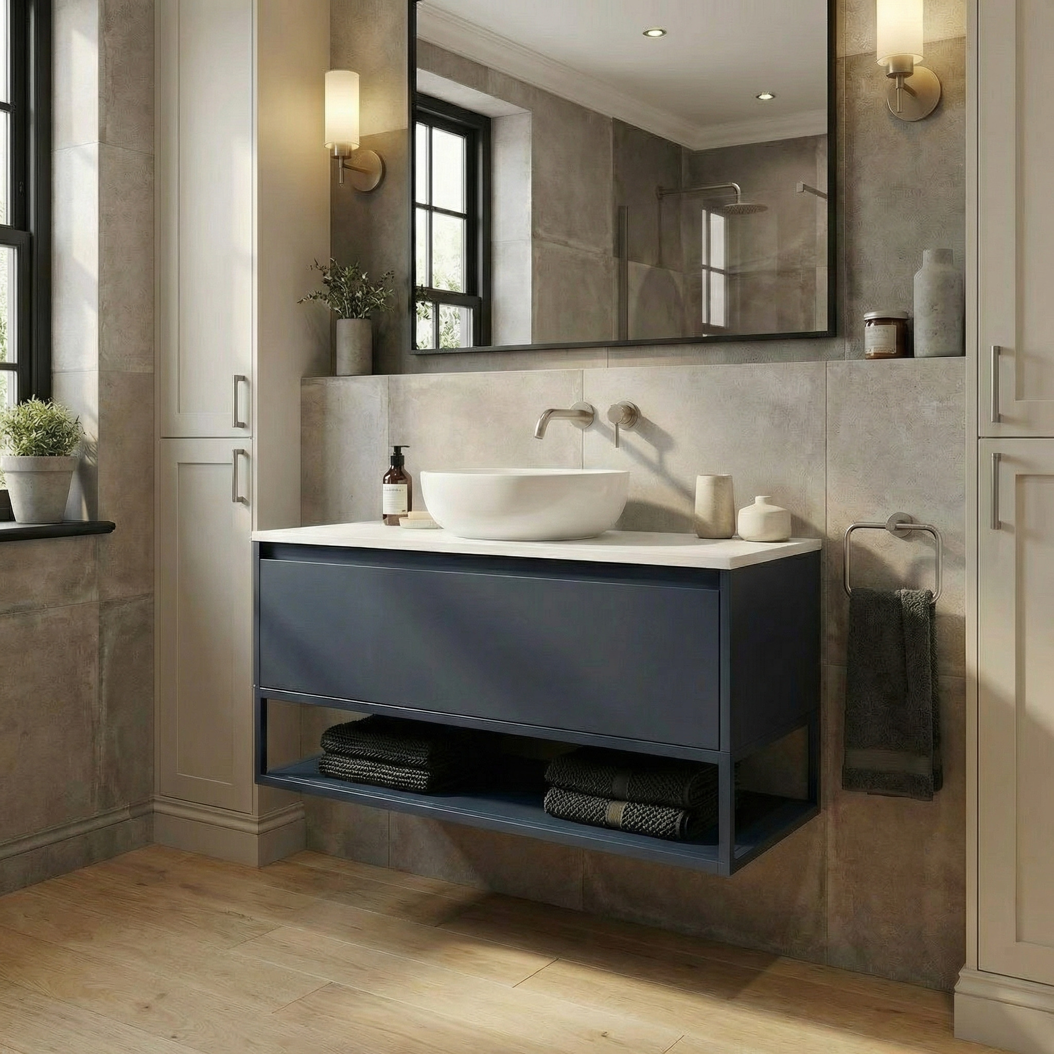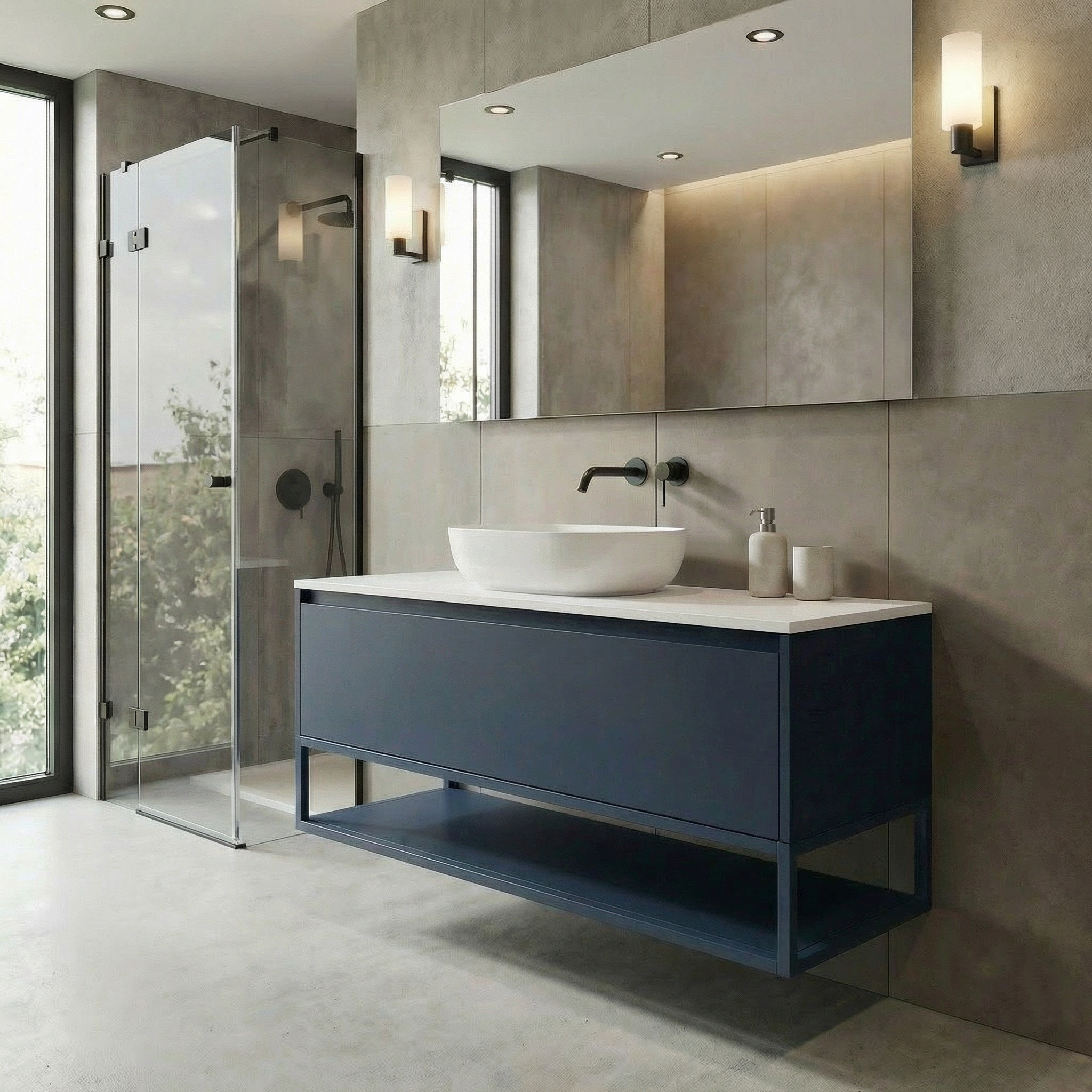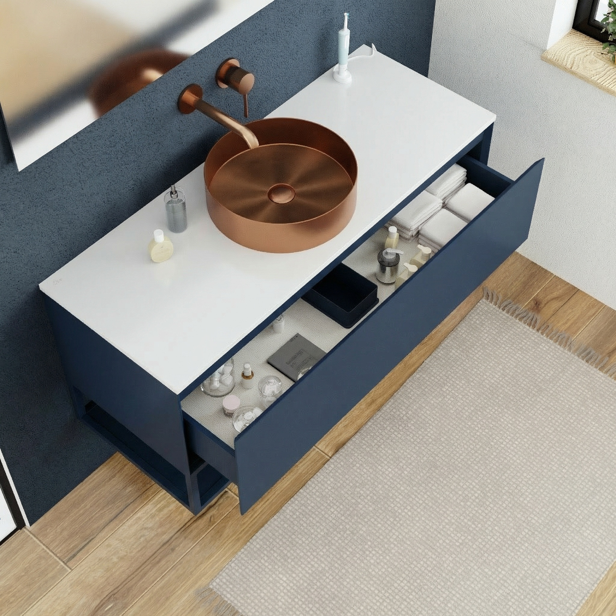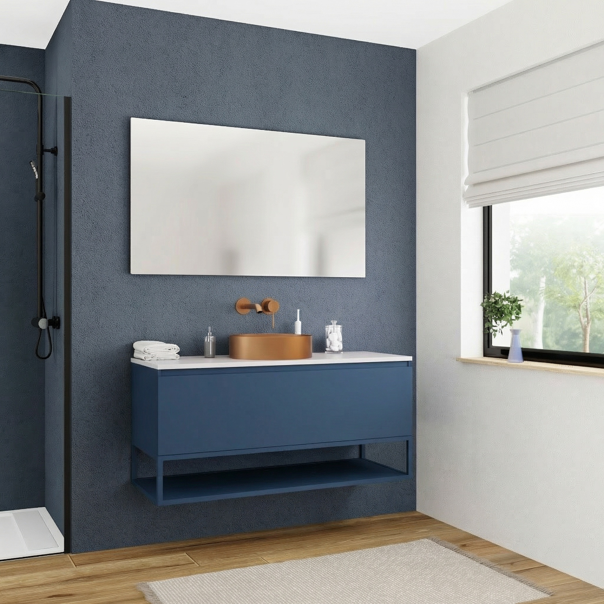 Sa finition bleu foncé profonde et contemporaine donne du caractère à votre intérieur tout en restant facile à associer avec une vasque blanche, des accessoires noirs ou des éléments en bois clair.